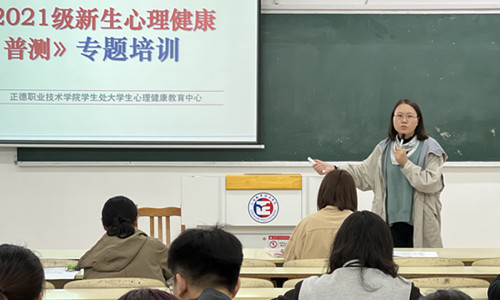 会上,心理中心专职教师樊荣针对2021级新生心理普查的结果,对新生辅导员进行培训。重点从四个方面进行:一是如何根据评测量表的结果对学生进行评估;二是对于确实有异常行为的学生如何进行约谈及其他干预措施;三是如何与心理中心老师建立连接,合力对帮扶“特殊学生”;四是如何建立“特殊学生”的心理档案。