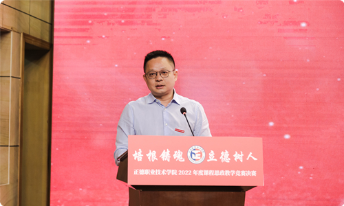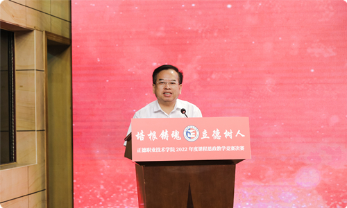 江爱华在开幕辞中表示,自今年5月份启动的学院首届课程思政竞赛,时间跨度长、参与教师多,是对我院课程思政建设阶段性成效的一次检阅。学院将长效化、常态化抓好课程思政建设,夯实具有正德特色、彰显正德品牌的高职课程思政体系,形成“系部有精品、门门有思政、课课有特色、人人重育人”的良好局面,构建更高水平的高职人才培养体系,培养更多堪当民族复兴大任的时代新人、大国工匠、能工巧匠。