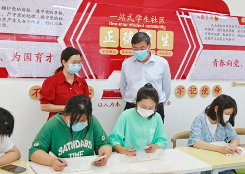 马欣一行检查了校园门岗、核酸检测点、一站式学生社区、食堂等重点场所,详细了解了校园管理、核酸检测、校门出入及国庆假期的生活保障、活动安排等情况。