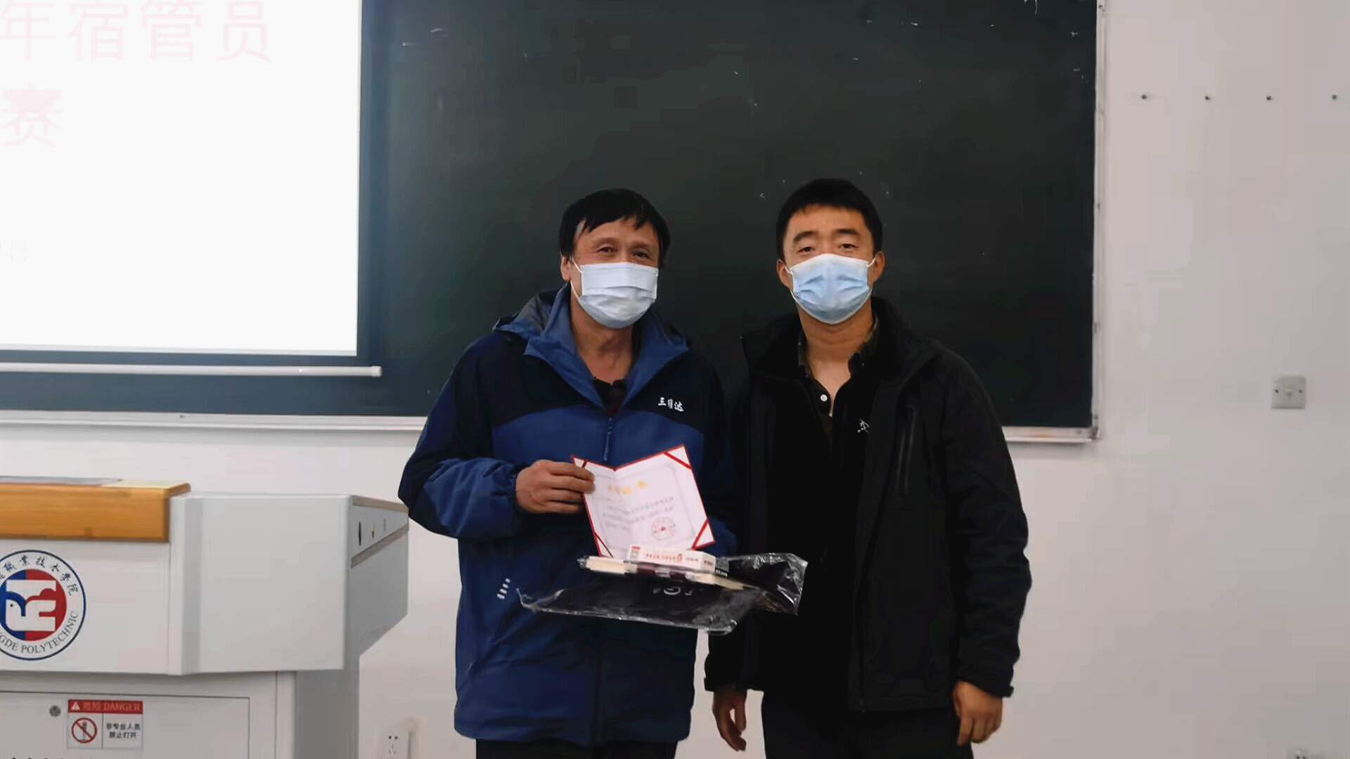 参赛宿管员赛前总结工作经验积极备赛,比赛中全情投入认真答题。在第一轮比拼中,北10栋宿管员段学飞提前完成作答并且取得了笔试满分的成绩,赢得了现场热烈掌声。在第二轮学生辨识环节,每位宿管员们要在3分钟内对投影屏幕上的20名学生日常照片一一辨别并报出该生姓名,最终有6名宿管员辩认出全部学生的信息。赢得大家阵阵掌声。经过激烈角逐,最终北6栋管理员任远获得一等奖,北11栋杜大花、南2栋刘贞获得二等奖,北8栋徐慧、北1栋霍玉红,北2栋郑洋芳获得三等奖。