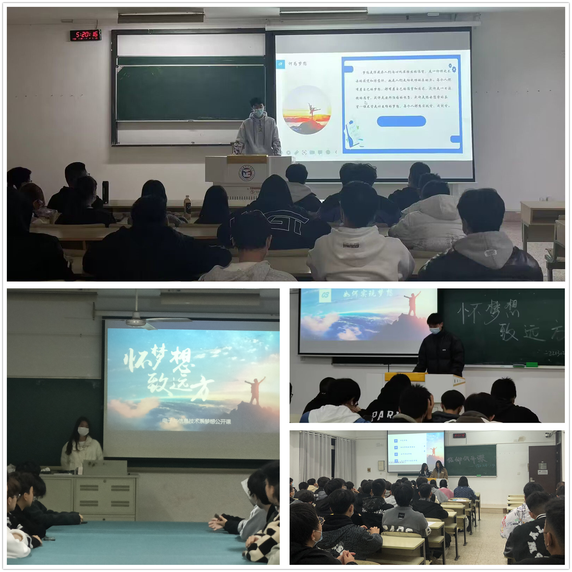 为了弘扬梦想精神,明确同学们对自己未来的发展规划,鼓励同学充实锻炼自身能力,电子与信息技术系于11月7日至20日开展主题为“怀梦想,致远方”信仰公开课活动。