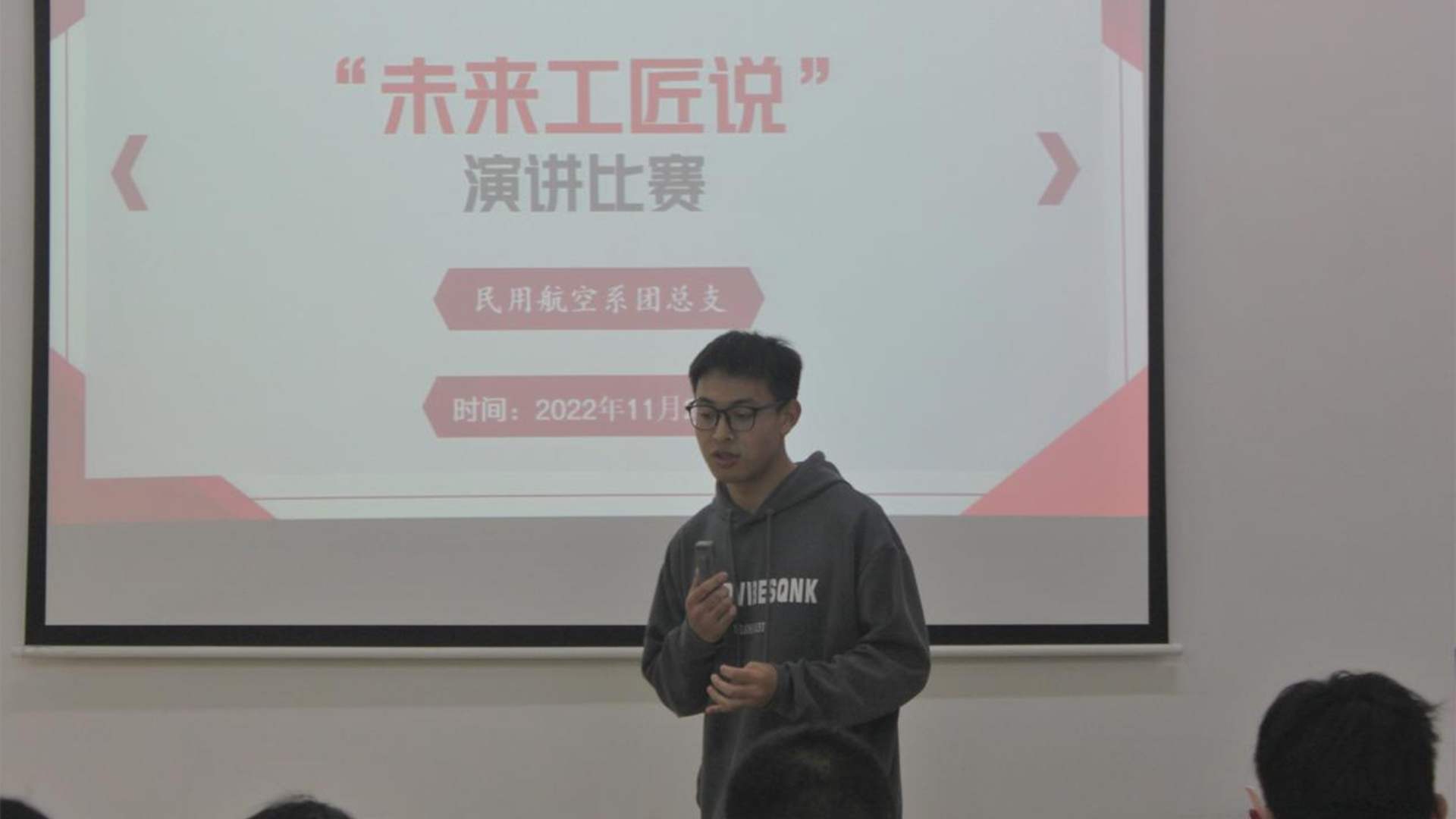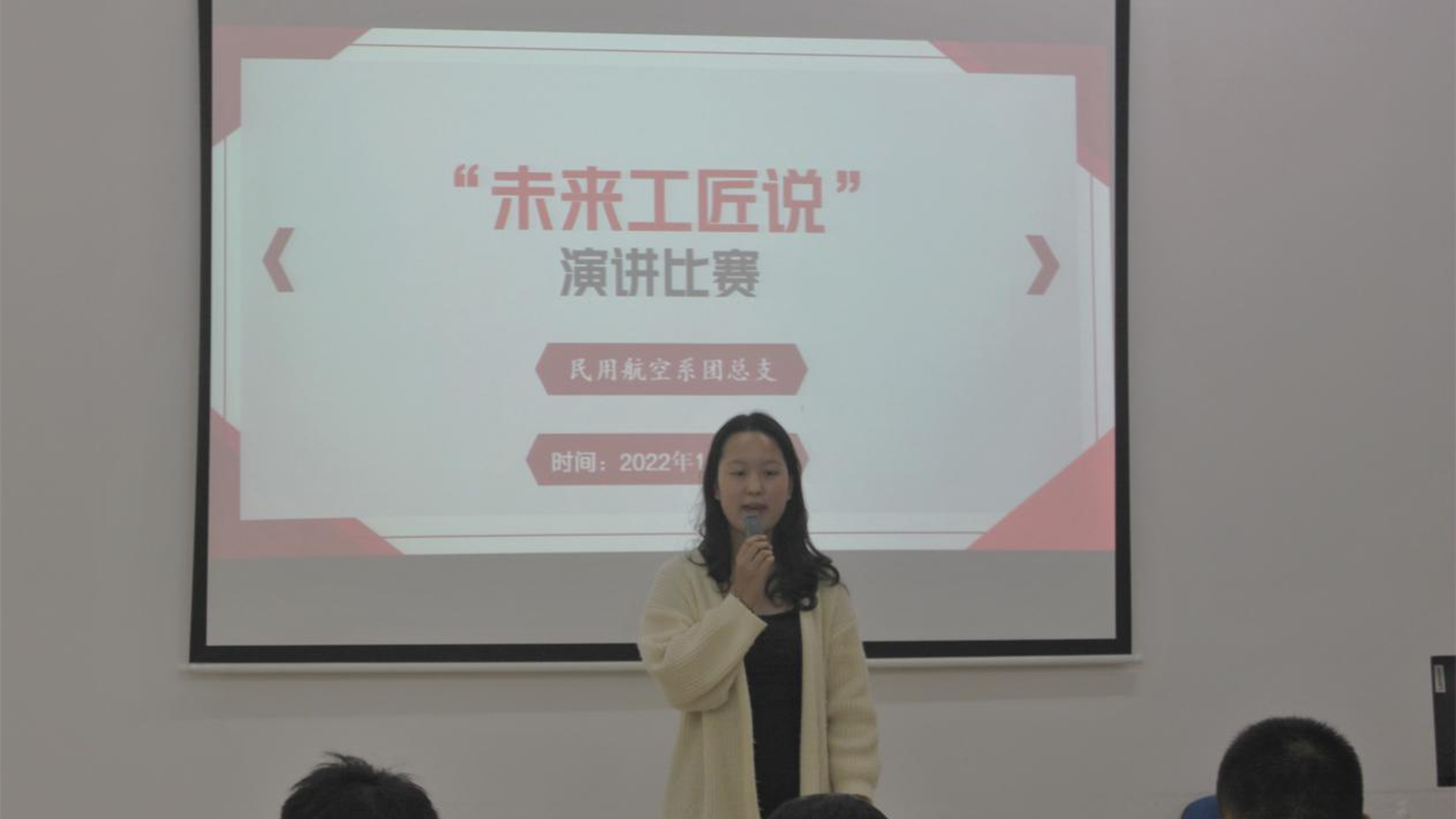 弘扬工匠精神,放飞青春梦想。为深入学习贯彻习近平总书记关于职业教育的重要指示精神和全国职业教育大会精神,大力宣传劳模精神、劳动精神、工匠精神,用学生围绕大国工匠、能工巧匠、劳动模范、行业能手等为榜样,演讲自己学习榜样人物典型事迹的感受感悟,以及今后树立远大理想、刻苦锤炼技能、养成职业精神,争做时代追梦者,走实技能成才、技能报国之路的具体打算和做法。民用航空系于2022年11月26日在5109开展了“未来工匠说”演讲活动,民用航空系党支部书记虞骏卿和团总支书记陈瑶作为评委出席了活动。