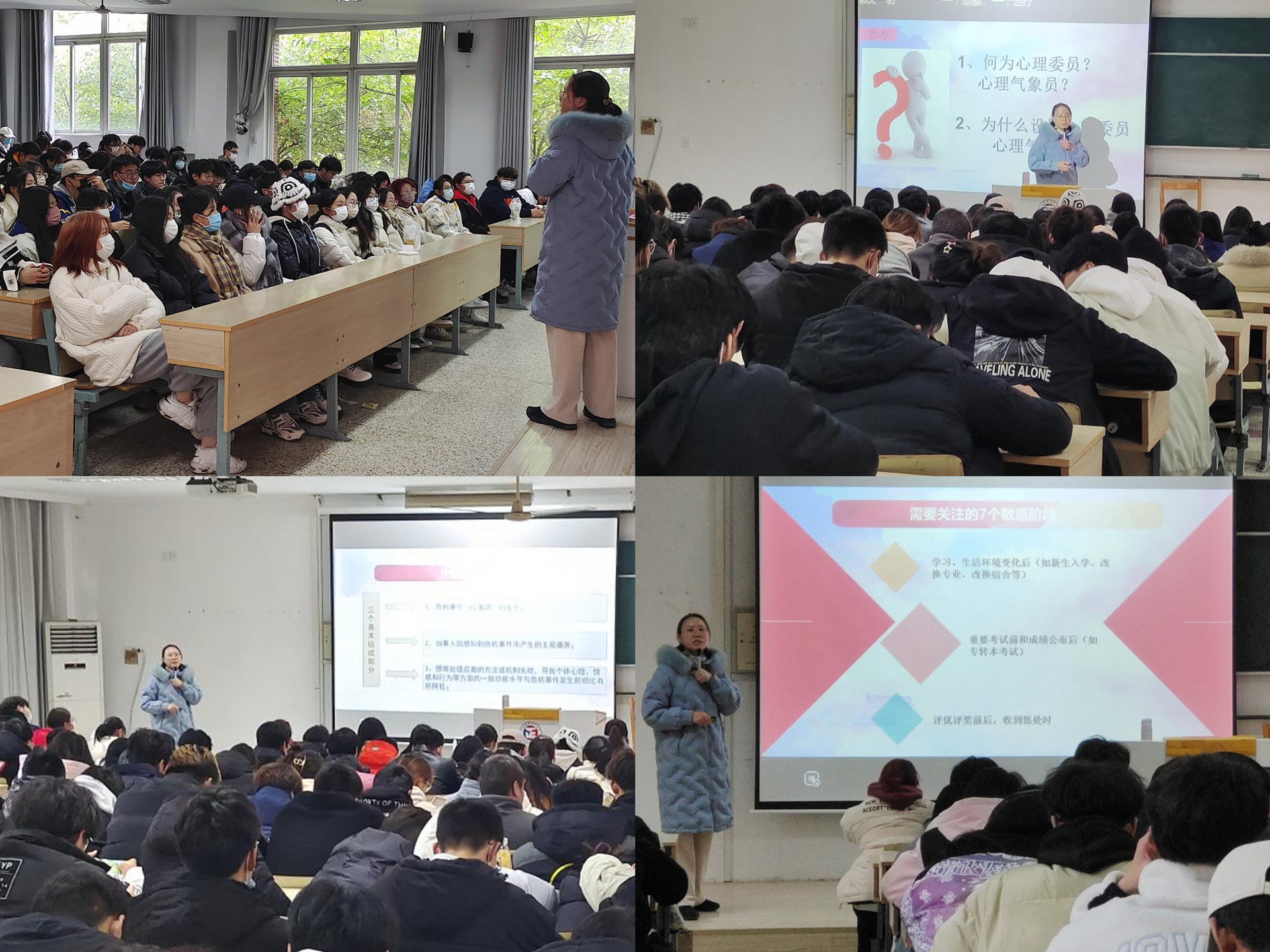 心理委员、心理气象员是我院心理健康教育工作的基础力量,他们来源于学生、深入在学生,在普及心理健康知识、开展朋辈心理辅导、预防及干预心理危机工作中发挥着积极作用。我院高度重视学生的心理健康教育,每年不定期开展心理辅导技巧、大学生常见心理障碍等专题内容的系列心理专题培训。这也是我院着力提升朋辈心理服务能力、推进心理工作进班级、进寝室的重要举措之一,将心理健康教育工作深入到各班级、各寝室,形成全方位、多角度、全覆盖的心理健康教育合力,提高危机预警工作实效。