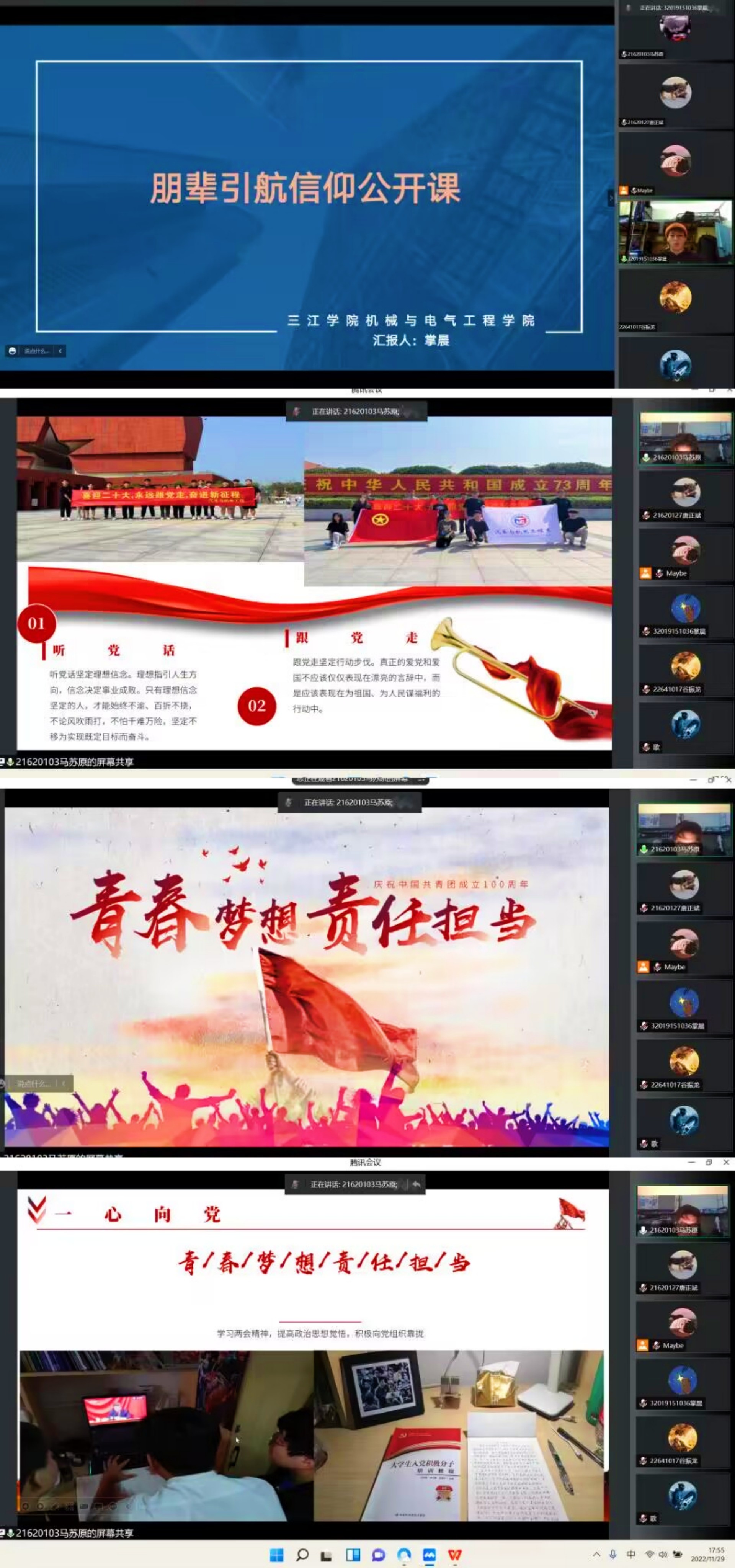 为加强青年对中国共产党的认识,提高思想觉悟,团结引领广大青年坚定跟党走,引导新报到学生更好地融入正德大家庭。汽车与机电工程系邀请到2018级优秀毕业生掌晨,2021级汽车与机电工程系学生会执行主席马苏原,文艺部部长退伍士兵唐正斌以“与祖国共奋进,做时代追梦人”为主题开展了一堂信仰公开课,2022级新生积极参与了本次活动。