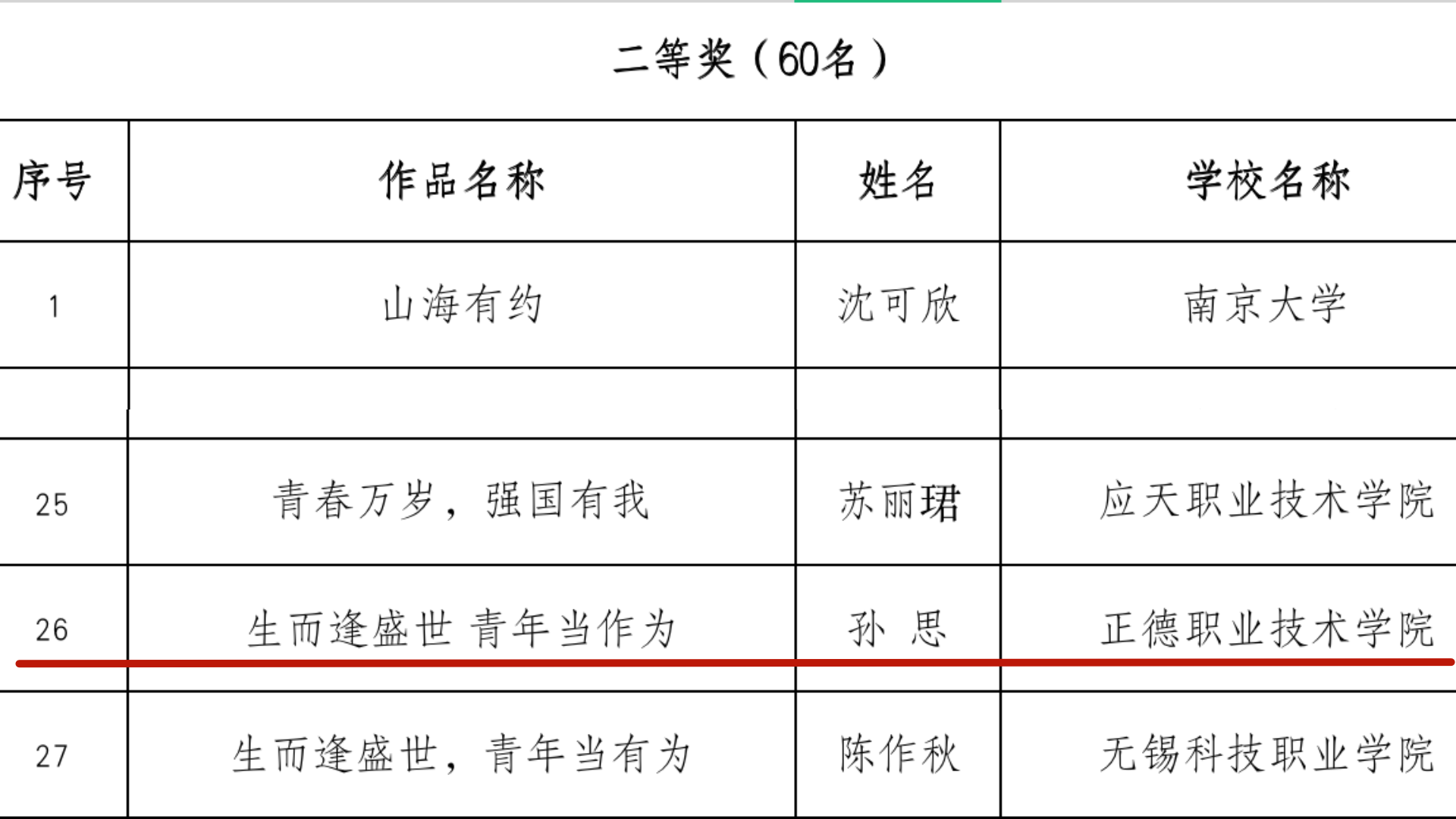 近日,由省委教育工委、省教育厅主办的“奋进新征程,青春勇担当”全省大学生征文比赛结果揭晓,我院艺术设计与建筑工程系孙思同学的作品《生而逢盛世 青年当作为》(指导教师:崔杰)荣获省征文比赛二等奖。