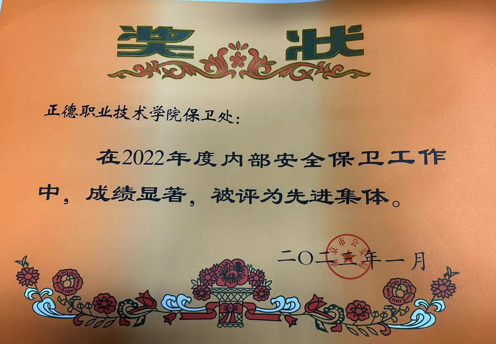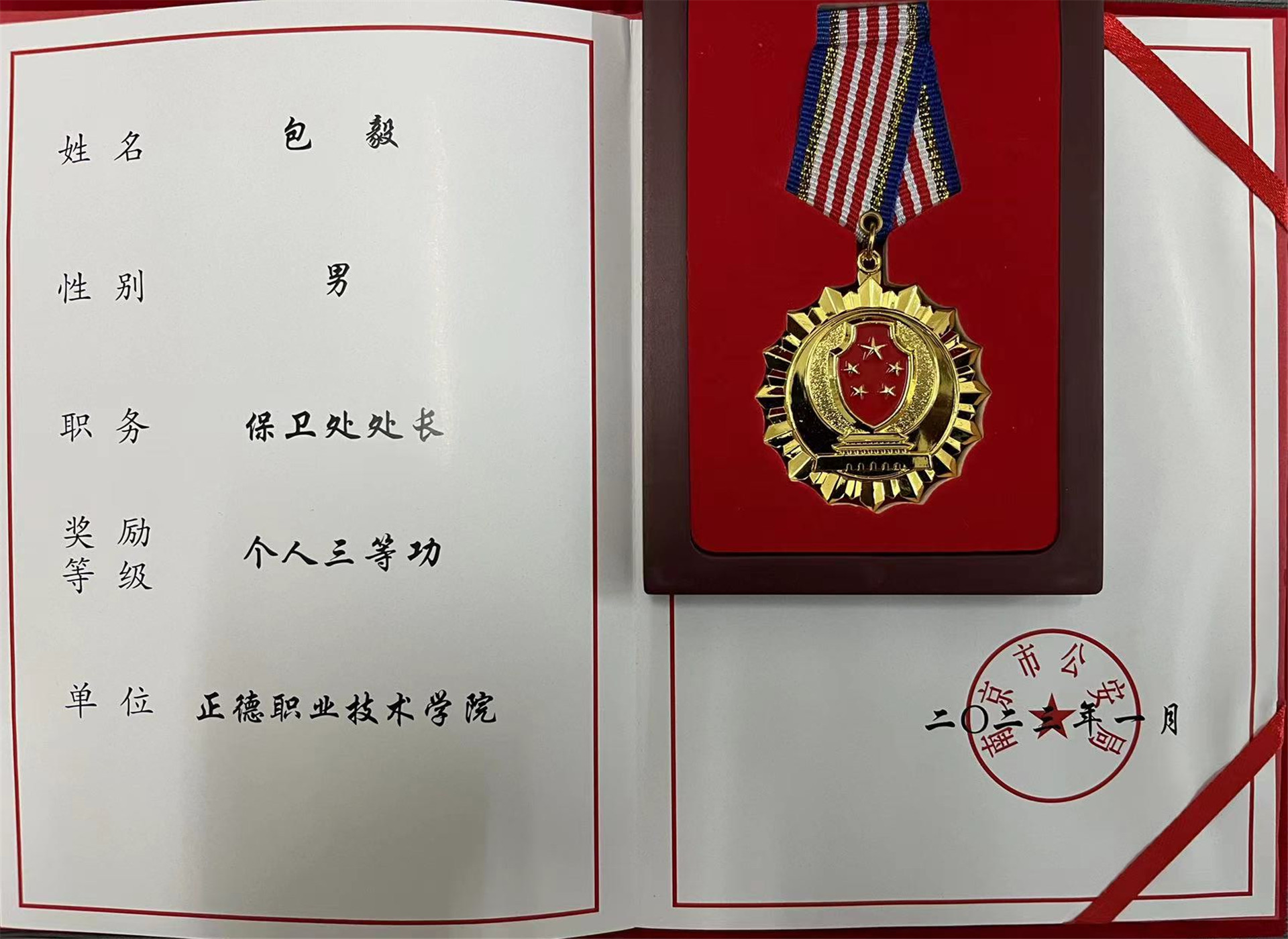 在南京市公安局“关于表彰2022年度全市内保系统先进集体和先进个人”的决定中,我院保卫处荣获2022年度内保系统先进集体,保卫处处长包毅获得个人三等功荣誉称号,既是驻宁同类高校中唯一获得荣誉的单位,也是驻宁10所受表彰高校中唯一获得两项荣誉的单位。