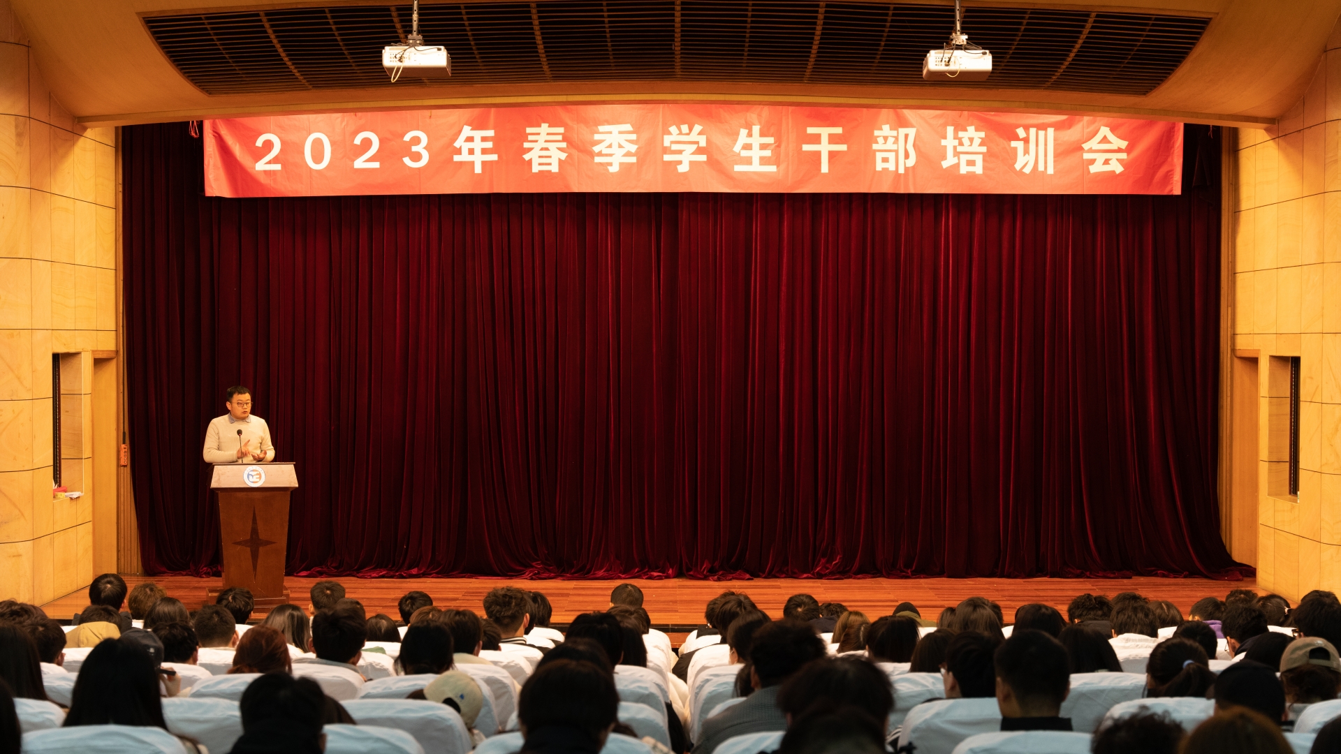 为进一步提高我院学生干部的综合素质,培养学生干部的组织管理能力、团队合作能力、自我管理和自我服务能力,切实发挥学生干部在“争创文明校园,做文明正德人”过程中的主力军作用,2月22日学生处、团委在报告厅召开2023年春季学生干部培训会。学生处处长祝佳俊、团委书记黄晓帆及各级学生组织负责人、各系班团干部近370人参加此次培训会,会议由团委老师俞婧童主持。