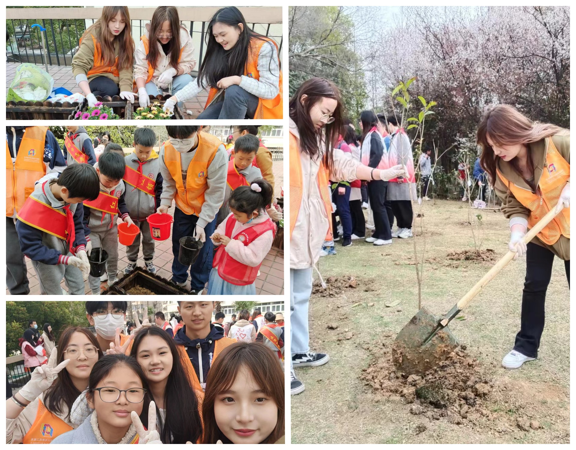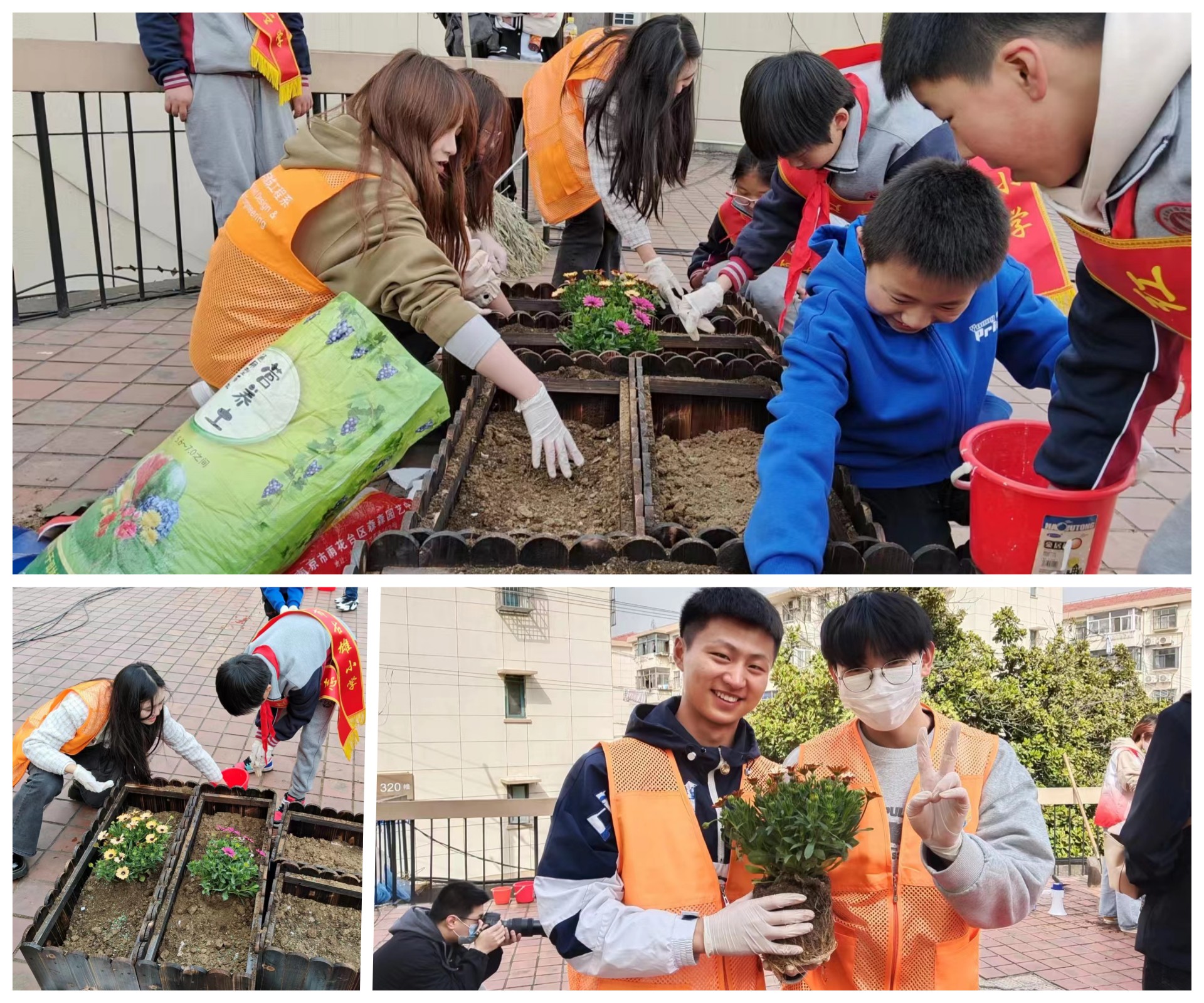 3月13日活动当天,同学们组成志愿小队前往上怡新村社区开展志愿服务。在与社区负责人进行简单的对接之后,同学们纷纷投入到志愿服务中去。活动现场同学们联合中小学的小朋友们一起开展“大手拉小手共筑绿色梦”的小活动,跟小朋友们一起种花,植树。
