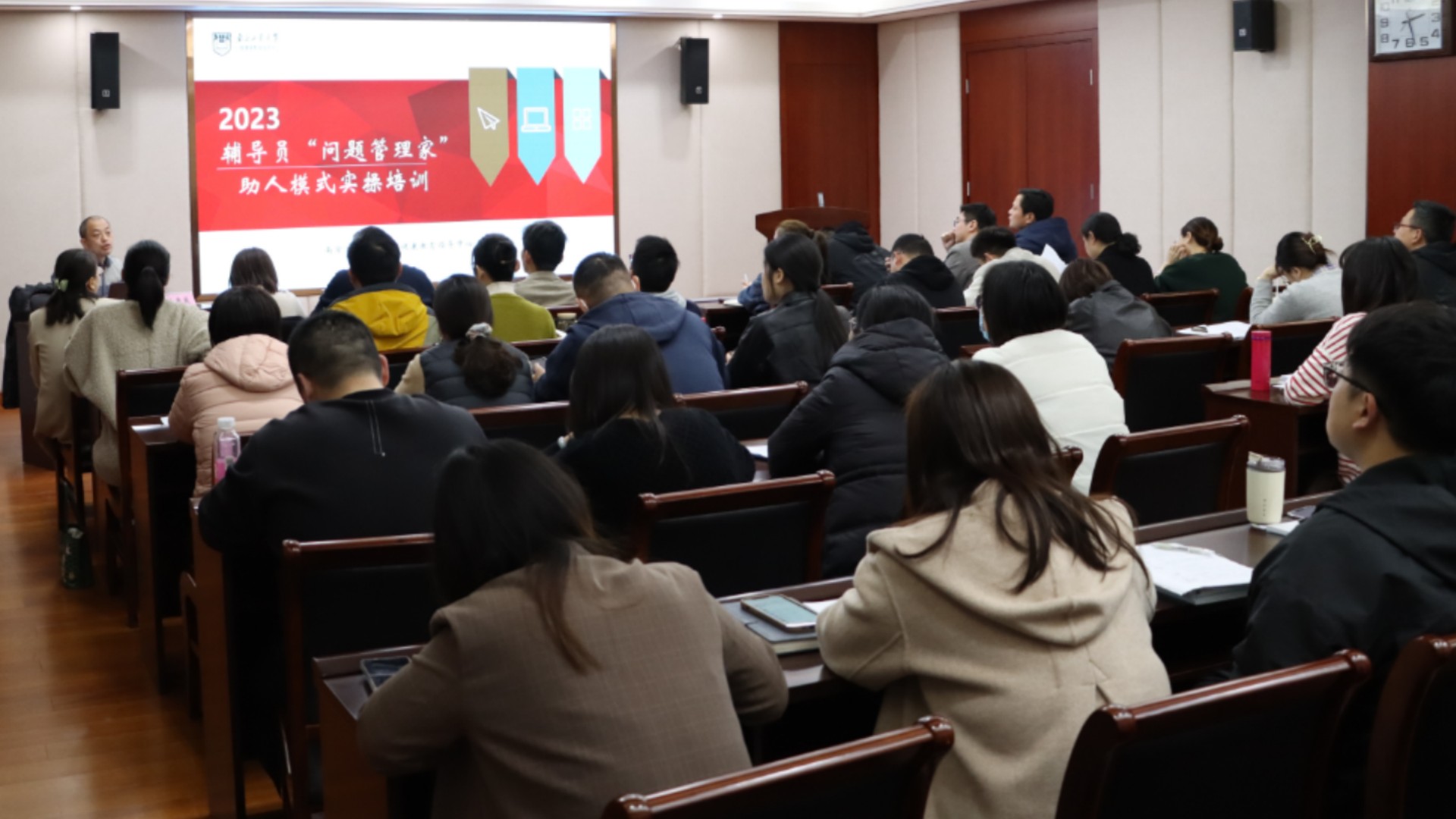 为有效提高辅导员谈心谈话技能,切实增强学生思想政治教育工作效能,进一步提升我院学工队伍工作水平,加强学工队伍职业化、专业化建设力度。3月14日下午14点30分,我院邀请南京工业大学心理健康教育指导中心主任、江苏省大学生心理危机干预专业委员会委员朱巍巍老师来我院开展“辅导员谈心谈话技能提升”专题培训。院长助理王健、学生处副处长张宝华、各系学生工作负责人、全体辅导员及心理中心专职教师参加了本次培训,培训会由张宝华主持。