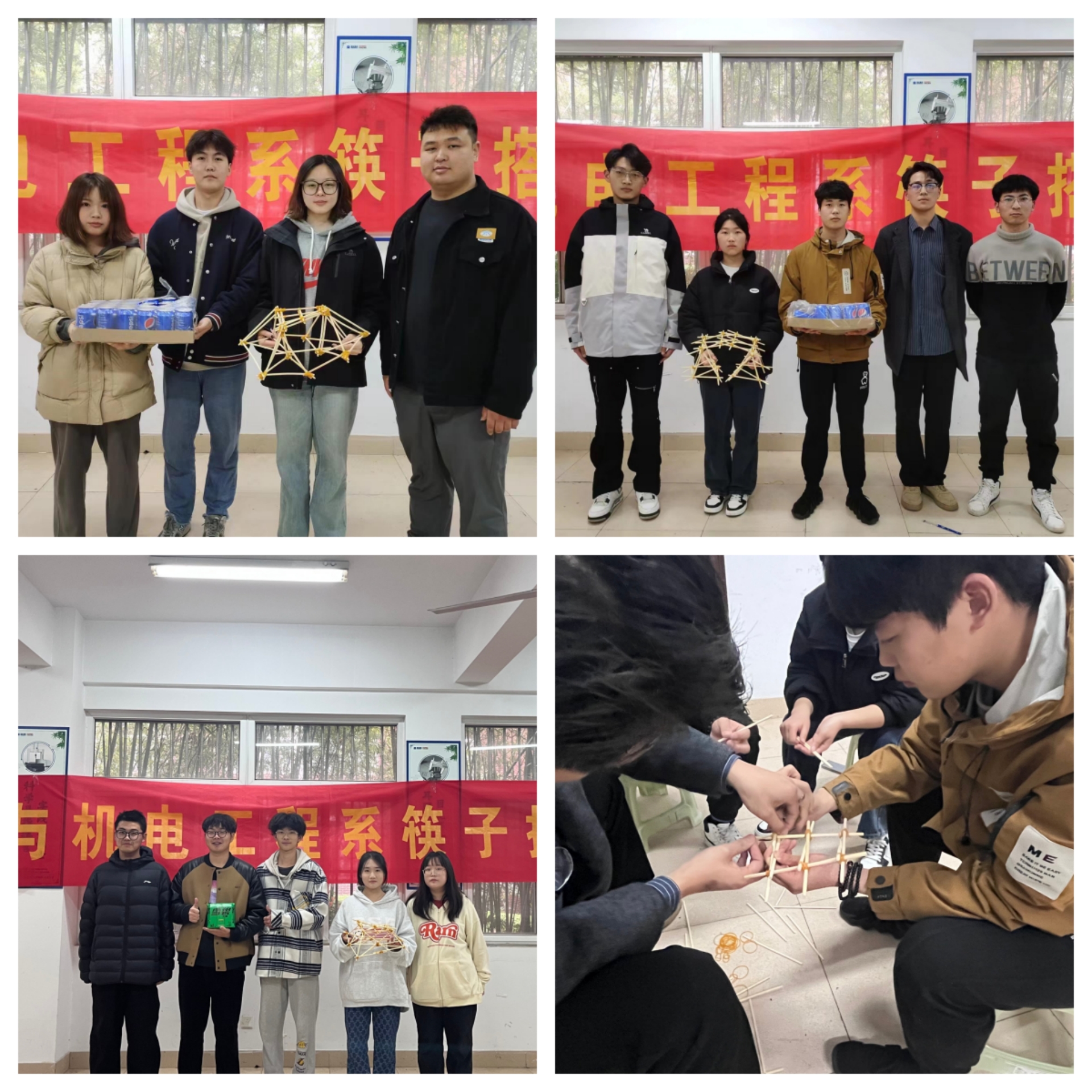 为营造良好的科技创新环境,增强同学们的动手能力,汽车与机电工程系联合兄弟系部于3月23日13时,在7110教室举办“琴湖咏春”校园文化艺术节——“筷子搭桥”承重比赛。