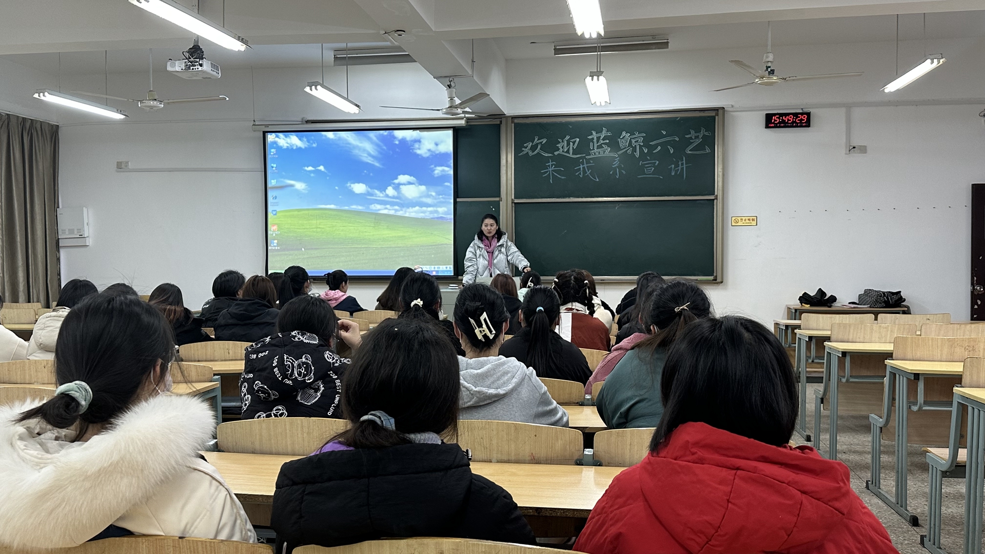 蓝鲸六艺负责人谢楚老师指出,该企业的教育理念是“用艺术引出孩子潜藏的智慧”,以文明的传承与开拓为宗旨,以每个孩子面向未来发展为归宿,创办独立品牌蓝鲸六艺。谢老师详细介绍了企业概况、企业文化、企业员工培养模式、企业发展状况及发展前景与同学们作了分享。在宣讲会的互动环节,同学们也就自己所关心的专业对口、企业所需求的人才素质、公司发展平台与机会等问题与谢老师进行了互动交流,谢老师认真作答,并多次强调“选择”对于大学生的重要性,希望同学们都能找到自我实现的价值与目标,并为之努力奋斗。宣讲会场面热烈,掌声不断。