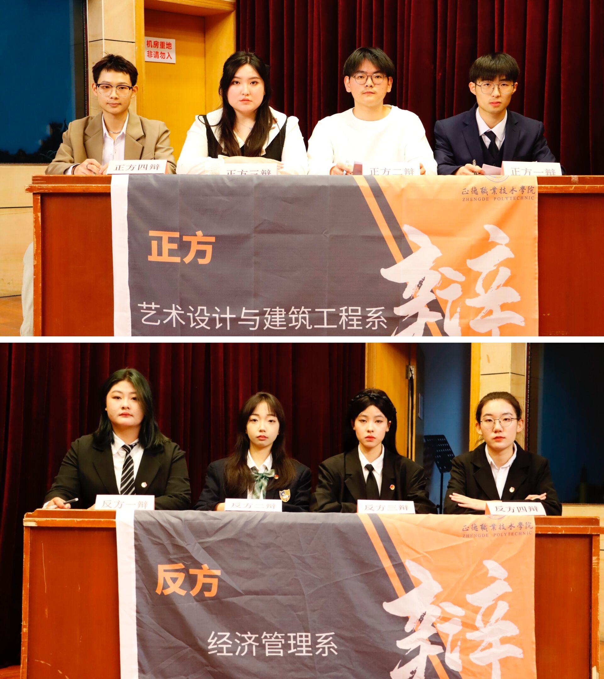 本届辩论赛分初赛、复赛、决赛,实行淘汰赛制,共六支队伍参加。辩题紧扣热点话题和我院学生思政工作重点,各系学生同场论辩、同台竞技,思想碰撞,火花四溢。经过前期在一站式社区进行的比赛,经济与管理系和艺术设计与建筑工程系两支队伍的优秀辩手们脱颖而出,在决赛的舞台上进行了一场激烈的交锋。双方辩手针对辩题:“高职学生培养工匠精神,匠心修炼更重要还是匠心实践更重要”展开激烈辩论。双方辩手围绕论点、引经据典、妙语连珠、旁征博引,现场气氛热烈而紧张。双方辩手势均力敌,现场氛围热烈高涨。
