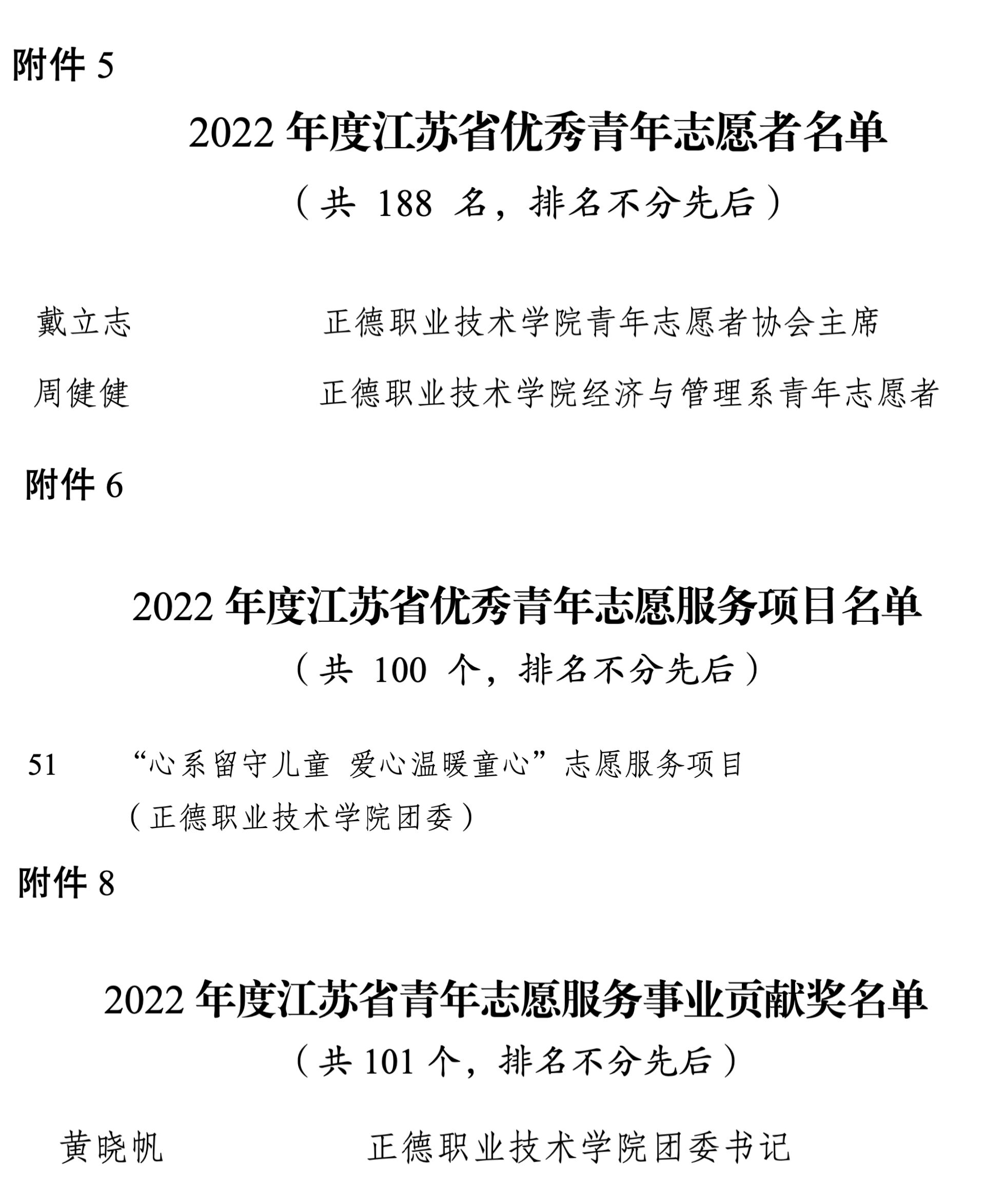 4月6日,江苏省青年志愿者协会下发《关于公布2022年度全省青年志愿者行动先进典型评选结果的通知》,对2022年全省青年志愿者行动先进典型进行表彰,我院电子与信息技术系戴立志同学、经济与管理系周健健同学荣获江苏省优秀青年志愿者称号,“心系留守儿童 爱心温暖童心”志愿服务项目荣获江苏省优秀青年志愿服务项目,我院团委书记黄晓帆荣获江苏省青年志愿服务事业贡献奖。