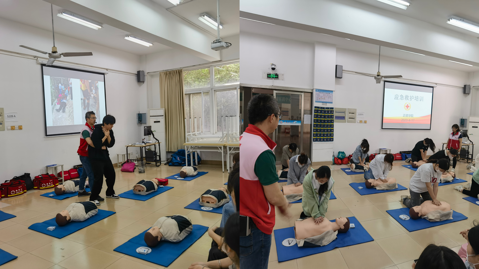 为提升学生急救知识技能,满足就业发展需要,4月17日至18日,民用航空系在5109民航实训室举办红十字救护员培训。本次培训邀请中国蓝豹(南京)救援队到校进行救护员理论和实操培训。2021级空中乘务专业148名同学参训并顺利通过考核,获得红十字会救护员证书。