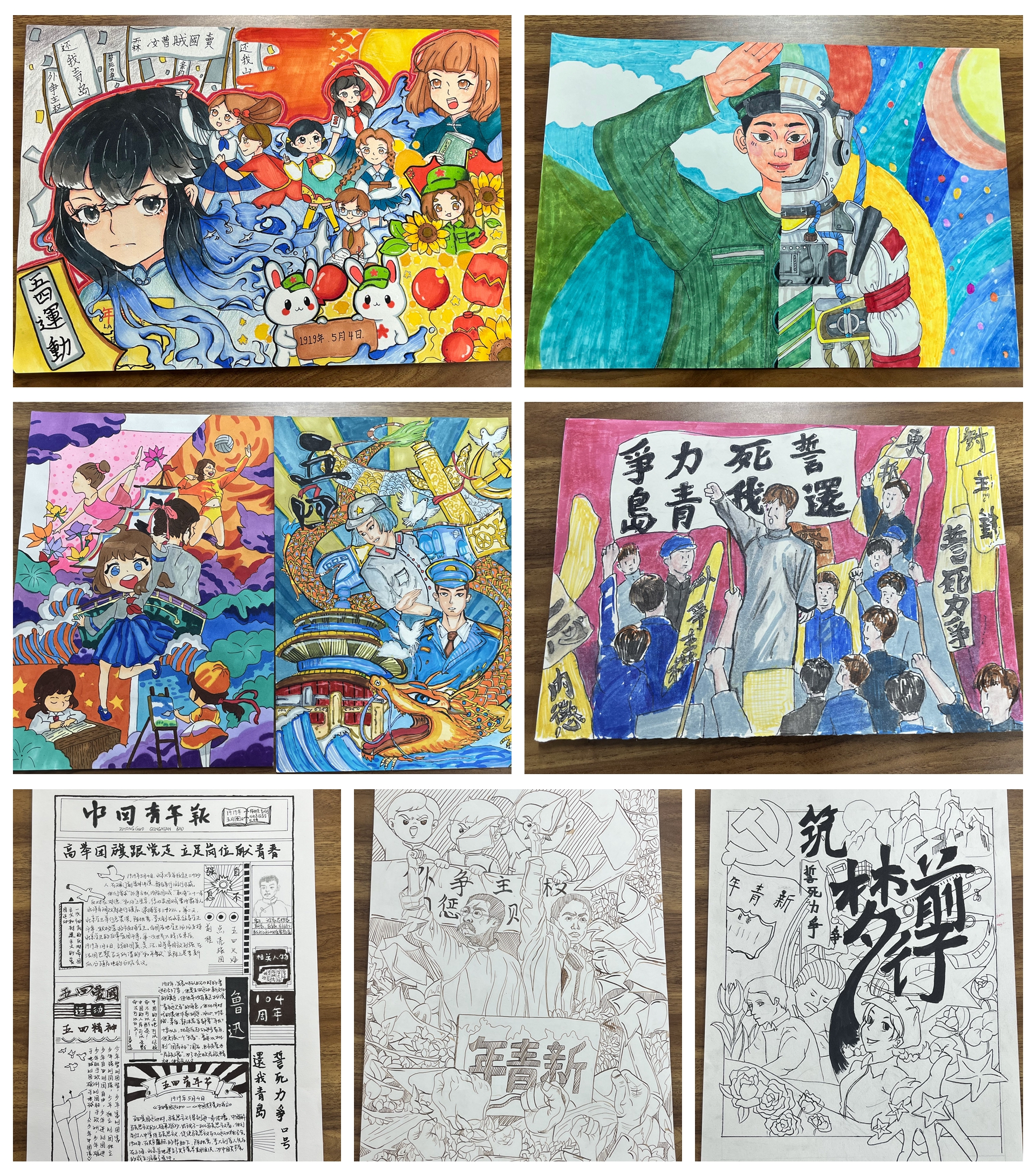 为了弘扬五四精神,培养学生的爱国情怀,激发同学们的民族自豪感和归属感,同时丰富学生的校园文化生活,营造校园文化氛围,基础教育系团总支于4月13日—25日举行以“传承五四精神,绽放青春之光”为主题的书画比赛,向青春致敬。