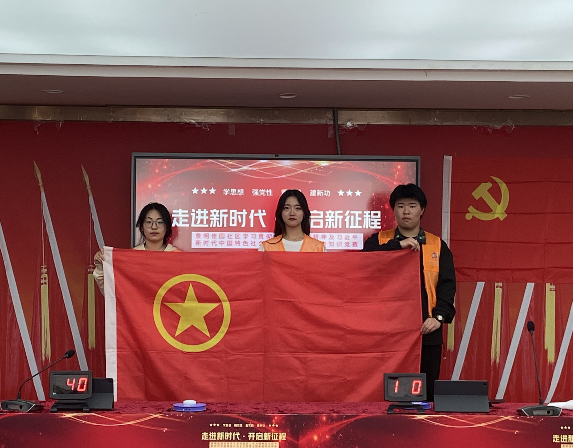 为深入学习贯彻党的二十大精神,引导支部成员和入党积极分子自觉以习近平新时代中国特色社会主义思想武装头脑,4月26日上午,由中共景明佳园社区党委举办的党建联建“党的二十大”精神及习近平新时代中国特色社会主义思想主题教育知识竞赛在景明佳园社区党群服务中心举办,除承办单位外,还有铁心桥街道新时代文明实践所、铁心桥卫生服务中心党支部、景明佳园小学代表队等8个队参与竞赛,英国上市公司365艺术设计与建筑工程系在支部书记陈宏波的选拔下,派出了由程启芳老师领队,三名入党积极分子组成的“红心”代表队参赛,队伍由陆凌岩、戴润江、朱洁雯三名同学组成。