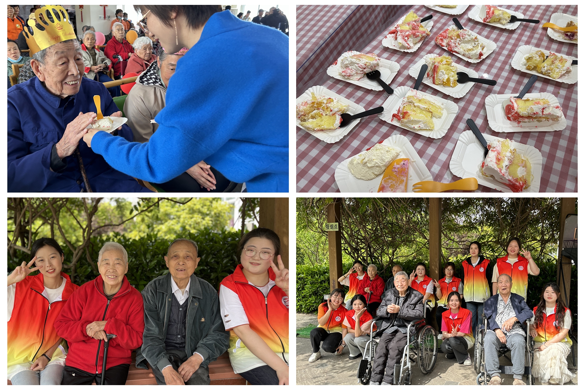 在庆生环节,现场所有的志愿者,员工以及来访的家属们齐声为寿星们唱起了生日歌,"从头切到尾,顺风又顺水;从左切到右,祝长者们健康又长寿;筷子一落,快快乐乐;出糕上头,鸿运当头!"工作人员边说着祝福的话边切蛋糕,志愿者们又把一份份蛋糕送到老人们的手中并与长者们亲切交谈,关心每位长者的健康状况和生活情况。现场一片洋溢着一片欢乐祥和的气氛。