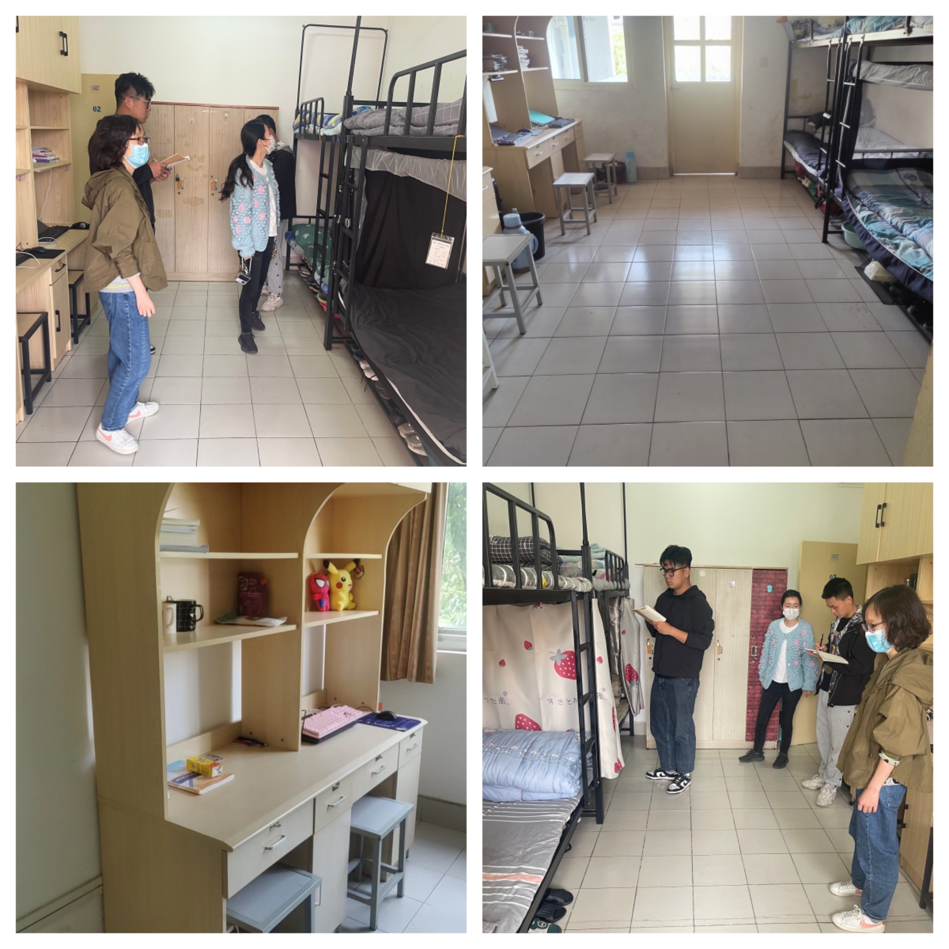为了丰富同学们的日常生活,创建文明、和谐、优美的宿舍环境,促进学生养成良好的生活习惯, 体现积极向上的生活态度,形成良好的生活风貌,发扬寝室同学之间互助互爱、团结协作精神。2023年5月15日,汽车与机电工程系全体辅导员深入学生宿舍,进行优秀宿舍评比。