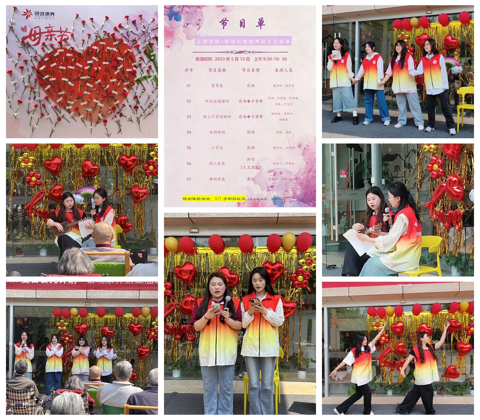 在这鲜花烂漫的五月,迎来了温馨的母亲节。为营造敬母爱母的良好氛围,弘扬中华民族的传统美德,基础教育系“微光”巾帼志愿者队于2023年5月13日来到了银城松椿颐养园开展“以爱之名,伴你到老”——致母亲节活动。