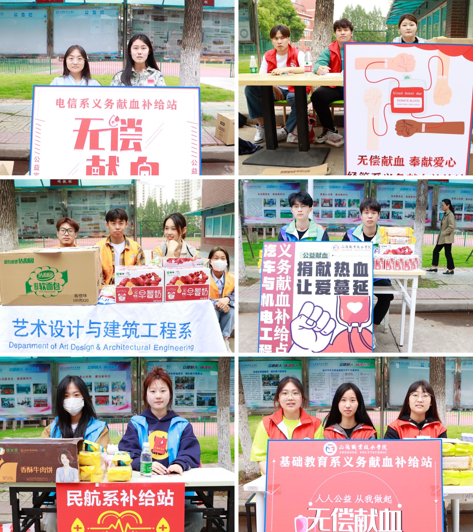 活动现场共分为登记区、体检区、献血区、领证区、补给区五大区域,有数十名院系青年志愿者轮班为前来献血的同学们提供服务和帮助。在登记区和休息区,放置了可供同学们领取和参考的献血知识宣传册,让同学们在等待和休息之余,可以进一步了解献血的相关知识,除此之外,六个系均为献血学生特别准备了“爱心大礼包”,里面有牛奶、饼干等营养补给品。