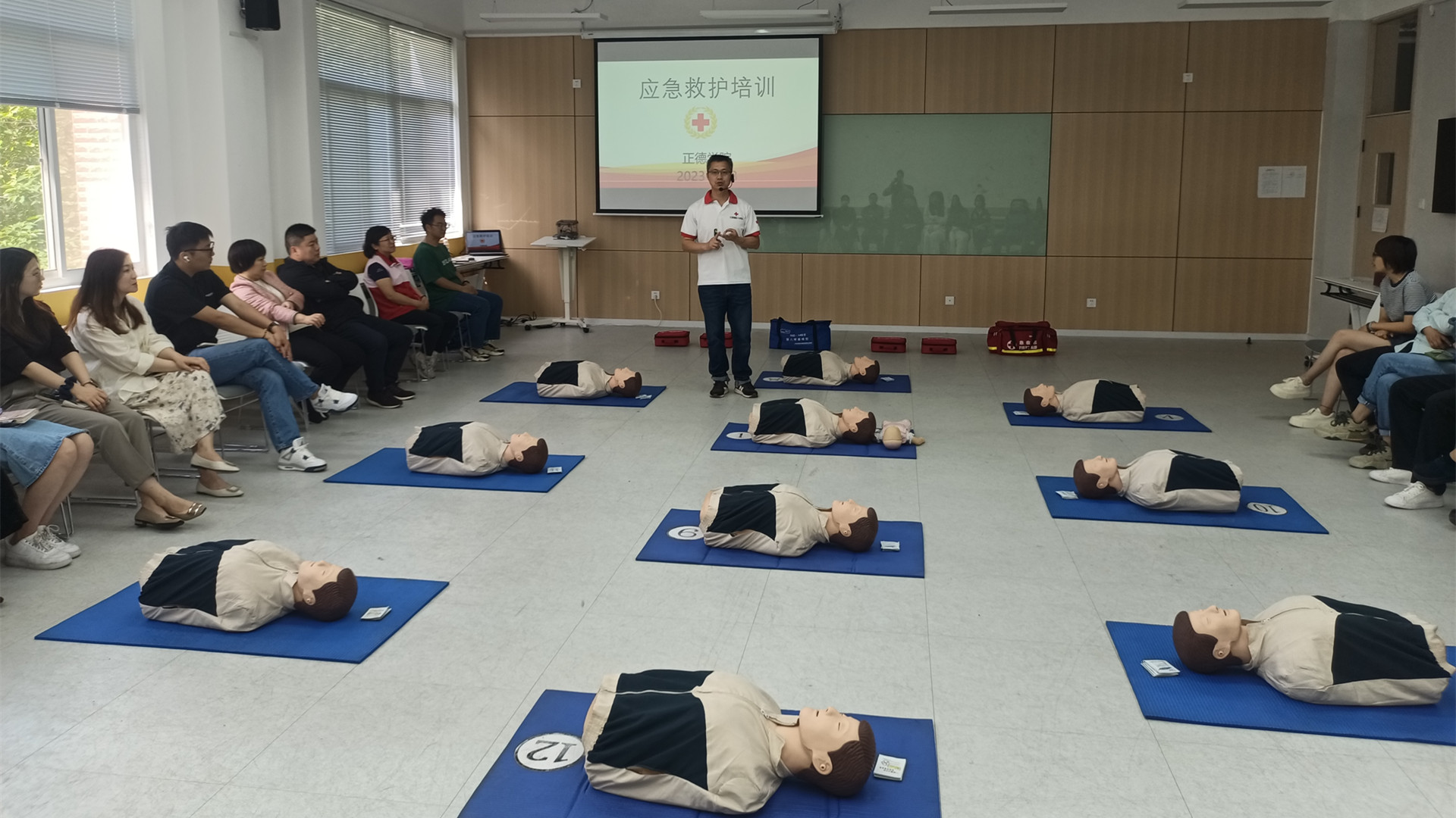 为提高我院辅导员在突发事件和意外伤害中的应急救护意识及自救互救能力,增强安全管理与危机应对的有效性和针对性,5月23日上午,学生处组织全体辅导员在9205教室开展应急救护专题培训,本次培训邀请中国蓝豹(南京)救援队教官、江宁区红十字会徐海老师现场指导教学。
