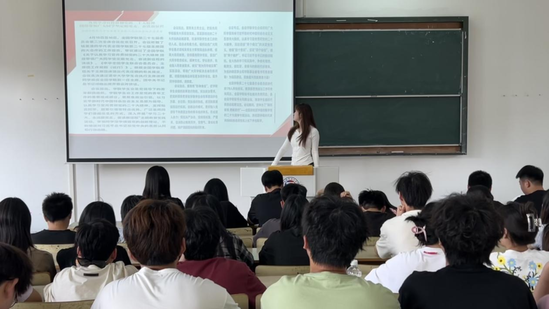 最后陈瑶对大会进行总结。她对获奖个人表达了衷心的祝贺,肯定了过去一年里民航系学生会取得的各项成绩,向大家提出了三点希望:一是不忘初心,坚定不移跟党走。高举习近平新时代中国特色社会主义伟大旗帜,全面贯彻党的二十大精神,为全面建设社会主义现代化国家、实现中华民族伟大复兴的中国梦努力奋斗;二是坚定理想,传承奋斗担当。当代青年生逢其时,一定要牢固树立远大理想,树立正确的世界观、人生观、价值观。志存高远,正己修德,争做栋梁;三是努力学习,勇于开拓创新。民航青年要继承和发扬五四青年敢为人先、破旧立新的光荣传统,勇于探索,敢于创新,结合专业,不断攻克新的难关,攀登新的高峰,在志愿服务、创新创业中再创佳绩。会议最后学习传达全国学联第二十七届委员会第二次全体会议成果。