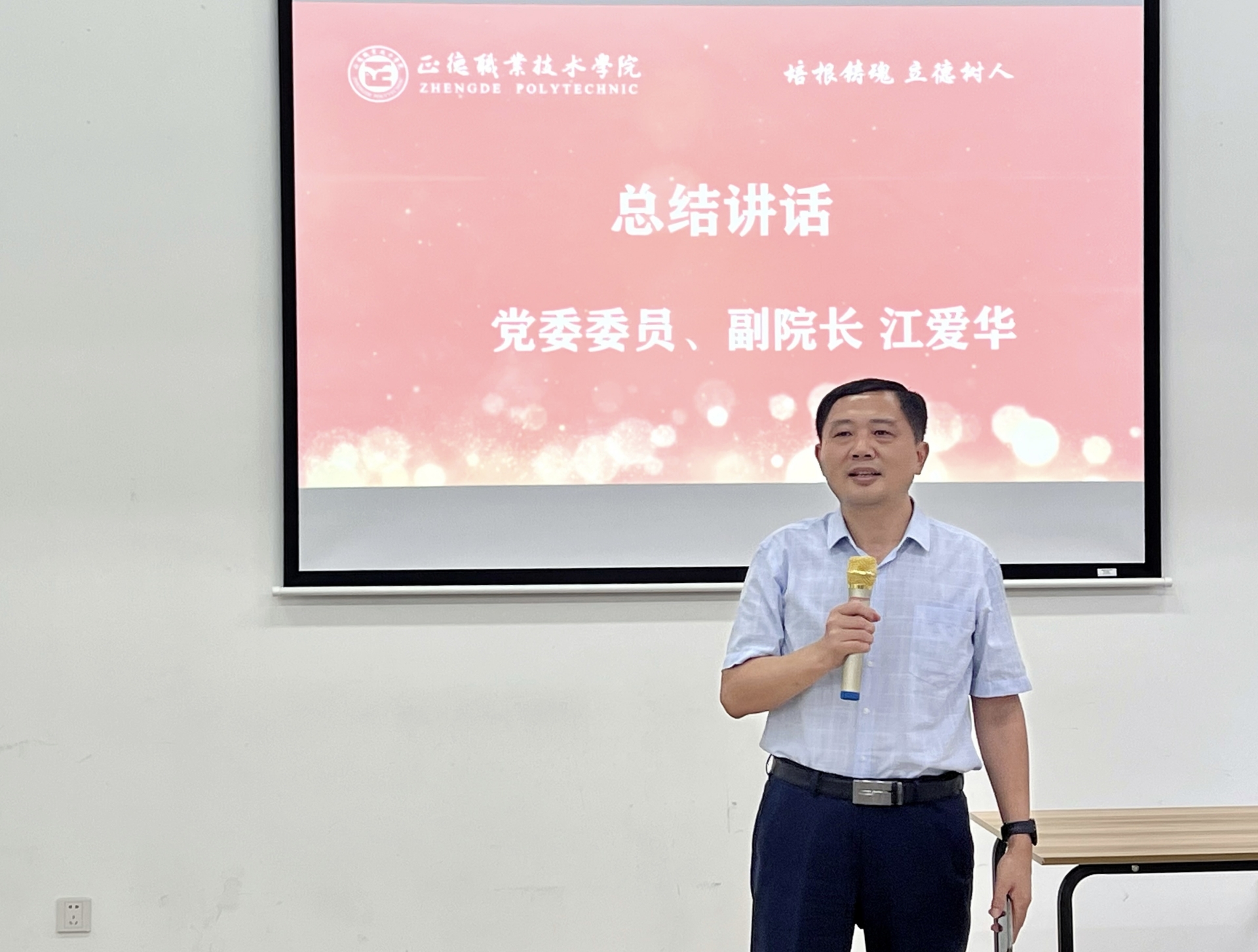江爱华在总结讲话中表示此次大赛是我院坚持立德树人、深化五育并举的生动实践,对参赛教师、评委和工作人员表示感谢,对参赛教师展现的深情、智慧和责任给予高度评价。江院长还现场展示了AI技术赋能教学工作,他提出要充分利用新技术推动教学管理、学生学习、教学实施方式的变革。