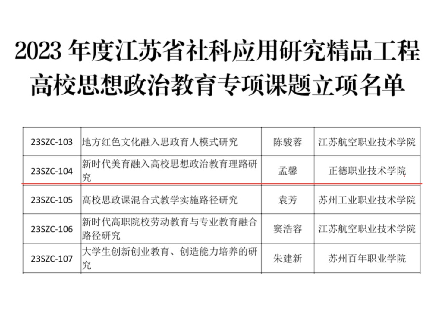 近日,江苏省哲学社会科学界联合会公布了2023年度江苏省社科应用精品工程思想政治教育专项课题立项名单,我院基础教育系教师孟馨主持申报的《新时代美育融入高校思想政治教育理路研究》获批立项。该课题以“美育课程”为着力点,致力于在课程教学中不断提高学生的审美与人文修养,为推进学院美育教育与实践高质量发展积极贡献力量。