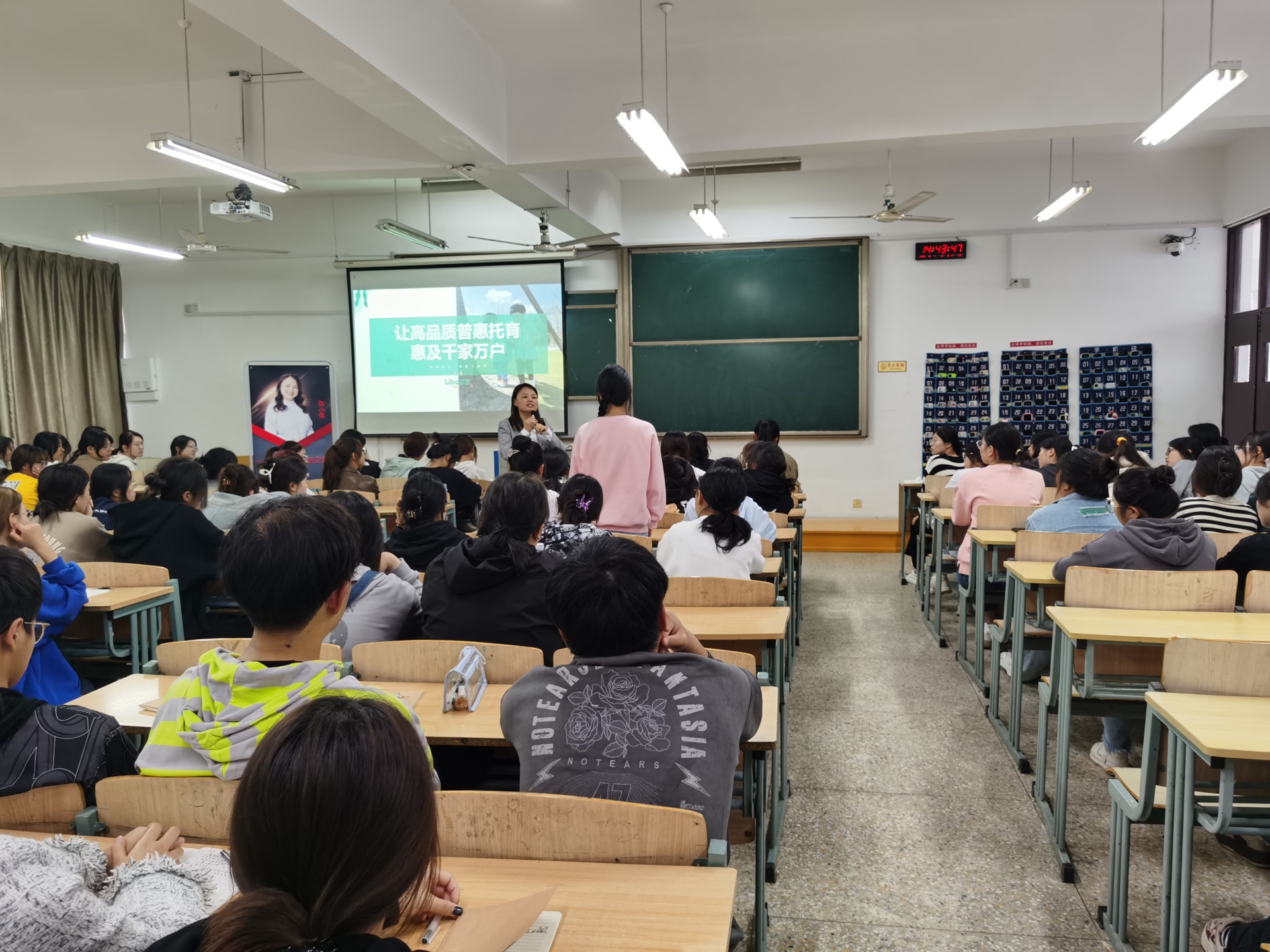 课堂上张经理围绕保育工作的重要性、托育市场的需求、人员素质、安全管理等方面详细给同学进行分析讲解,使学生更有代入感,得到了学生的良好反响与互动,树立专业发展信心。