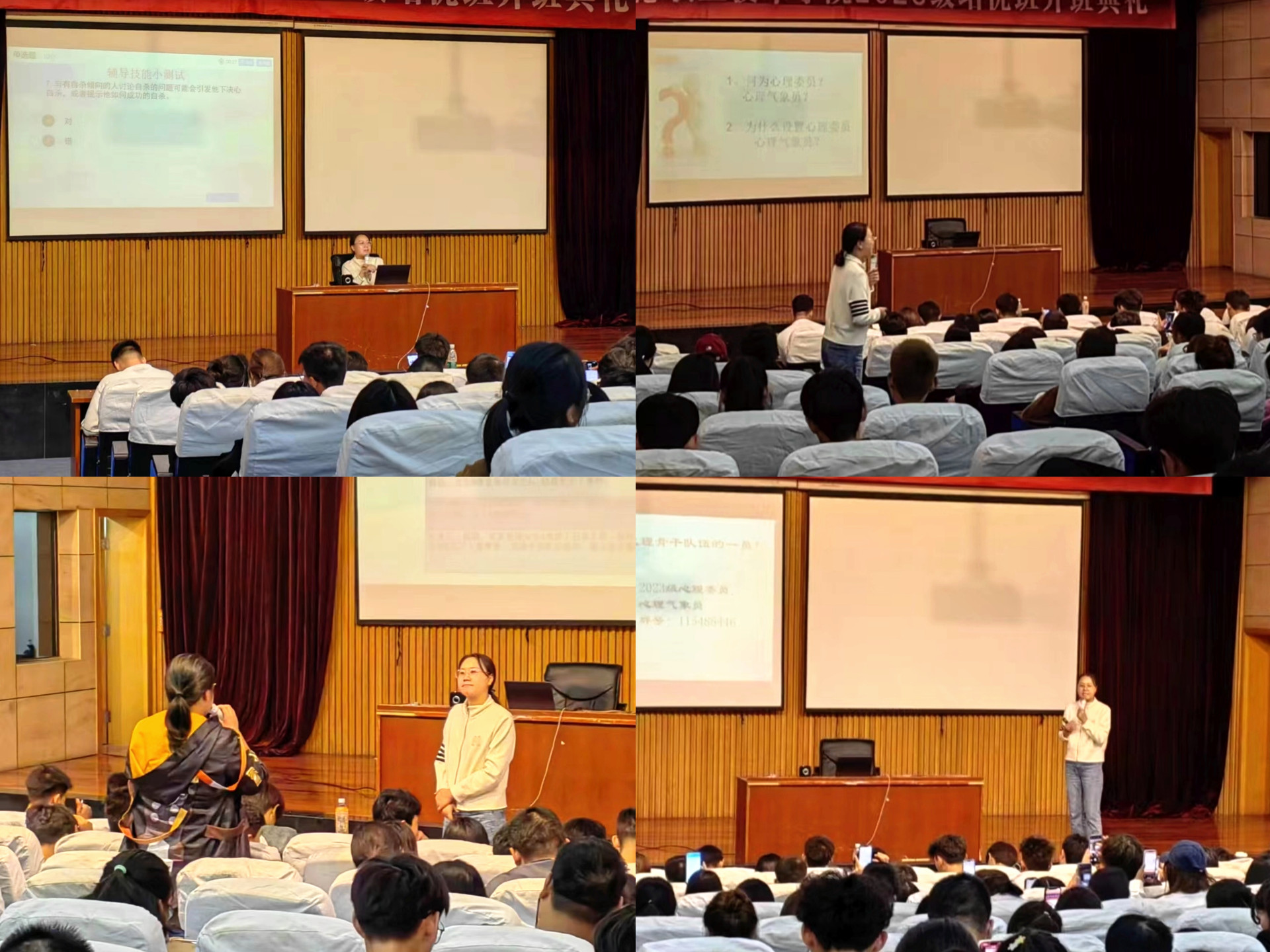 为进一步做好我院心理健康教育工作,充分发挥班级心理委员和宿舍心理气象员在朋辈心理辅导中的优势和作用,顺利开展心理自助、互助以及心理危机预警等工作,我院于10月19日下午13:00在学院报告厅对2023级班级心理委员及宿舍心理气象员进行了专项技能培训,本次培训的主题为《校园心理危机的识别与预防》,主讲老师为我院学生处大学生心理健康教育中心专樊荣老师。