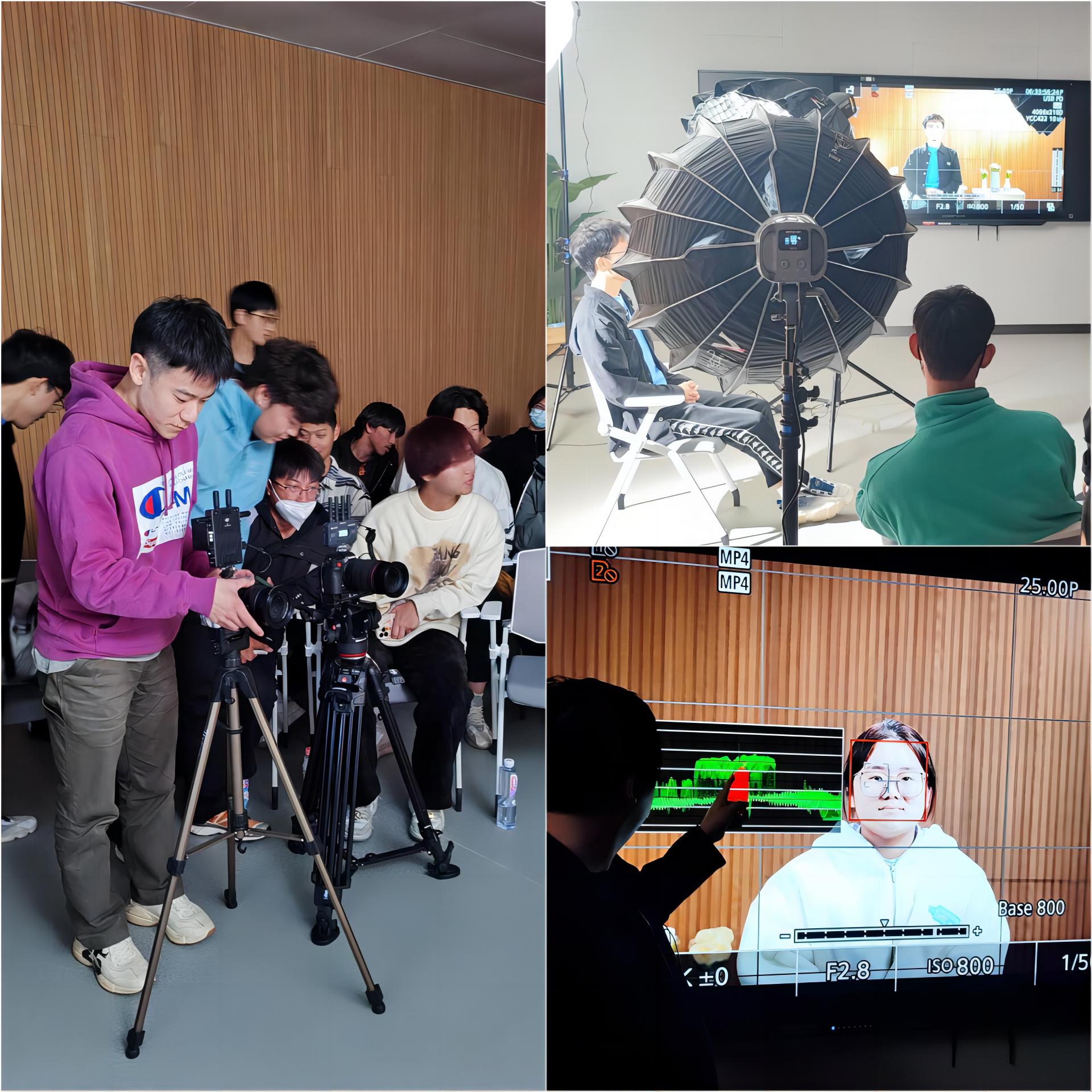 在电影创作实践环节中,特别邀请到了集导演、制片人、短视频达人等身份于一身的邵小白老师,带领学生们运用最新的电影创作设备为学生们带来一场真实的电影拍摄体验,包括剧本创作、角色设定、场景布置等,现场讲解了拍摄设备的各项功能和操作方法以及如何根据现场场景调整摄影的灯光,强调了拍摄素材存储的重要性。
