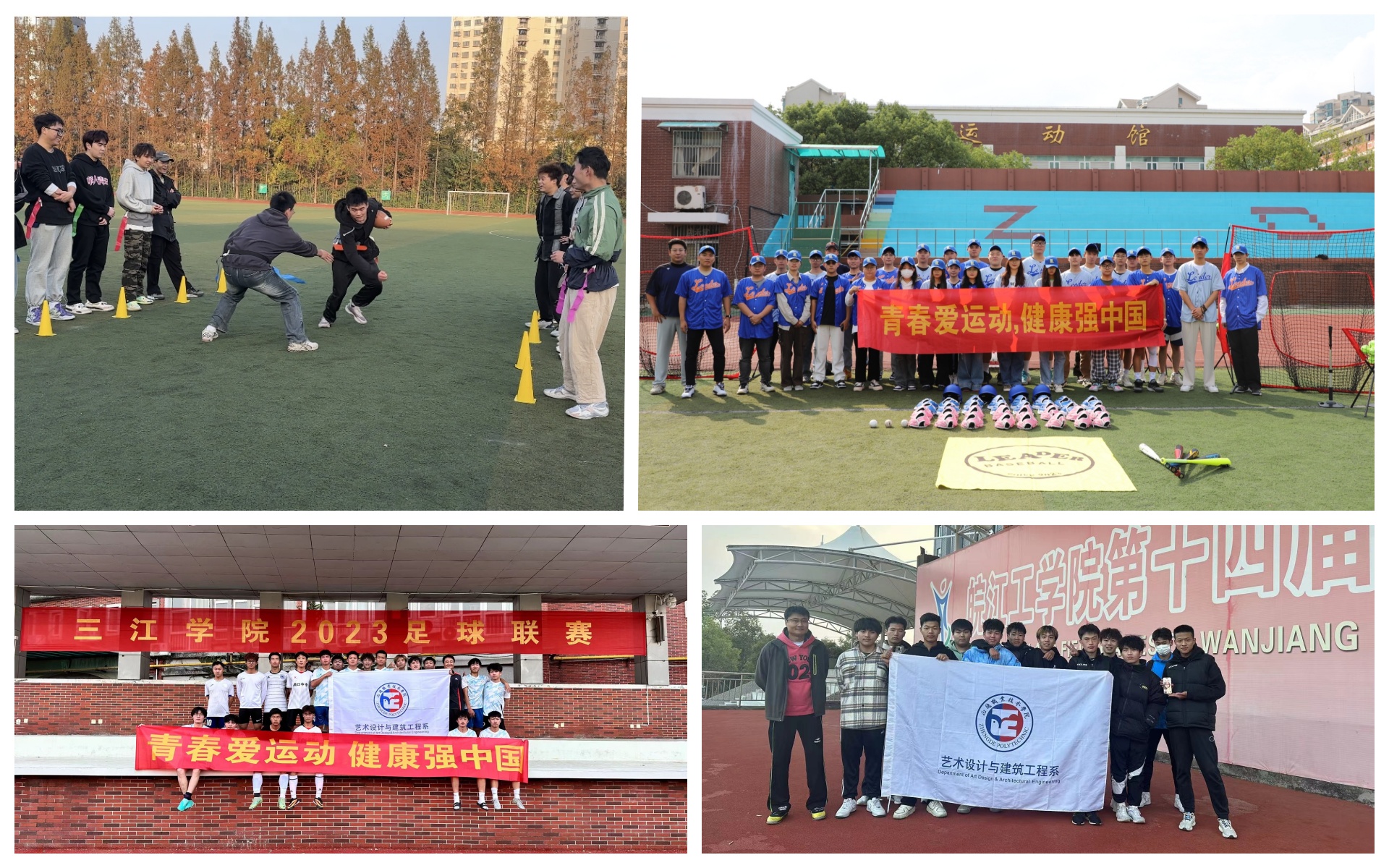 健康持续。一直以来,艺术设计与建筑工程系都非常重视校园体育工作,为了让青年学子走出宿舍、走下网络、走向操场,深入贯彻落实党的二十大关于“加强青少年体育工作,促进竞技体育全面发展,加快建设体育强国”要求。艺建系积极加强与兄弟院校之间的交流,本学期与三江学院、安徽皖江工学院等学校开展足球交流赛;开展“艺建第一棒”特色棒球体验课、“橄为人先”腰旗橄榄球体验课活动,以创新手段拓宽小众运动进校园,激发对运动的热情和兴趣。