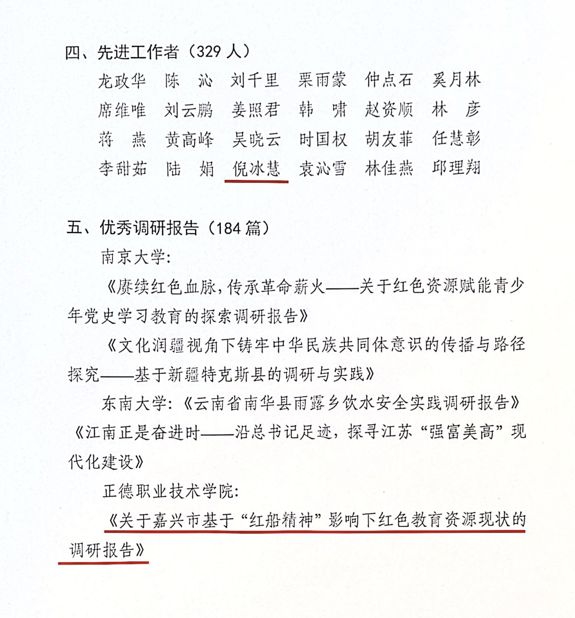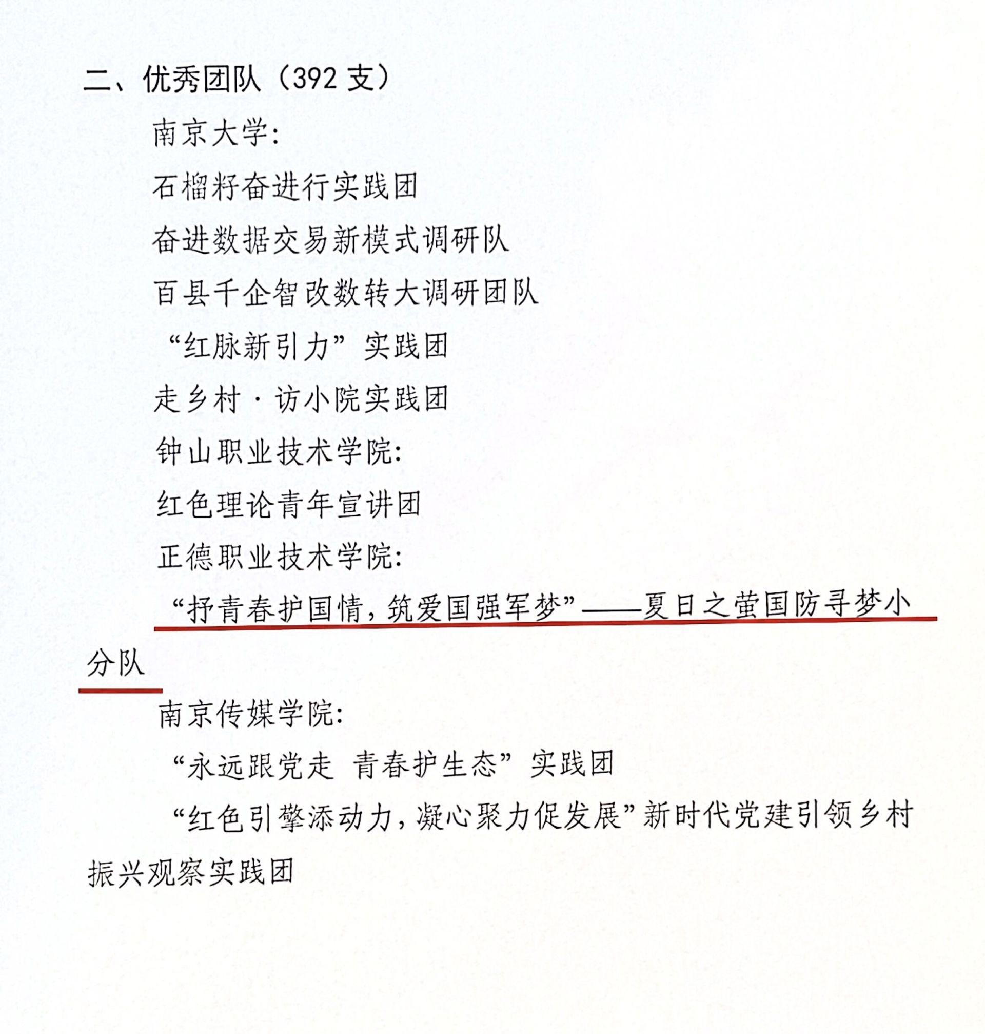 近日,江苏省委宣传部、江苏省文明办、江苏省教育厅、共青团江苏省委、江苏省学生联合会发布了《关于公布2023年全省大中专学生志愿者暑期文化科技卫生“三下乡”社会实践活动先进集体和个人名单的通知》,我院成果突出,多个集体和个人在活动中受到表彰。院团委荣获2023年江苏省“三下乡”社会实践活动先进单位;电子与信息技术系“抒青春护国情,筑爱国强军梦——夏日之萤国防寻梦小分队”荣获2023年江苏省“三下乡”社会实践活动优秀团队;艺术设计与建筑工程系《关于嘉兴市基于“红船精神”影响下红色教育资源现状的调研报告》荣获2023年江苏省“三下乡”社会实践活动优秀调研报告;经济与管理系团总支书记倪冰慧荣获2023年江苏省“三下乡”社会实践活动先进工作者称号;民用航空系张琦同学、基础教育系马语笛同学荣获2023年江苏省“三下乡”社会实践活动先进个人称号。