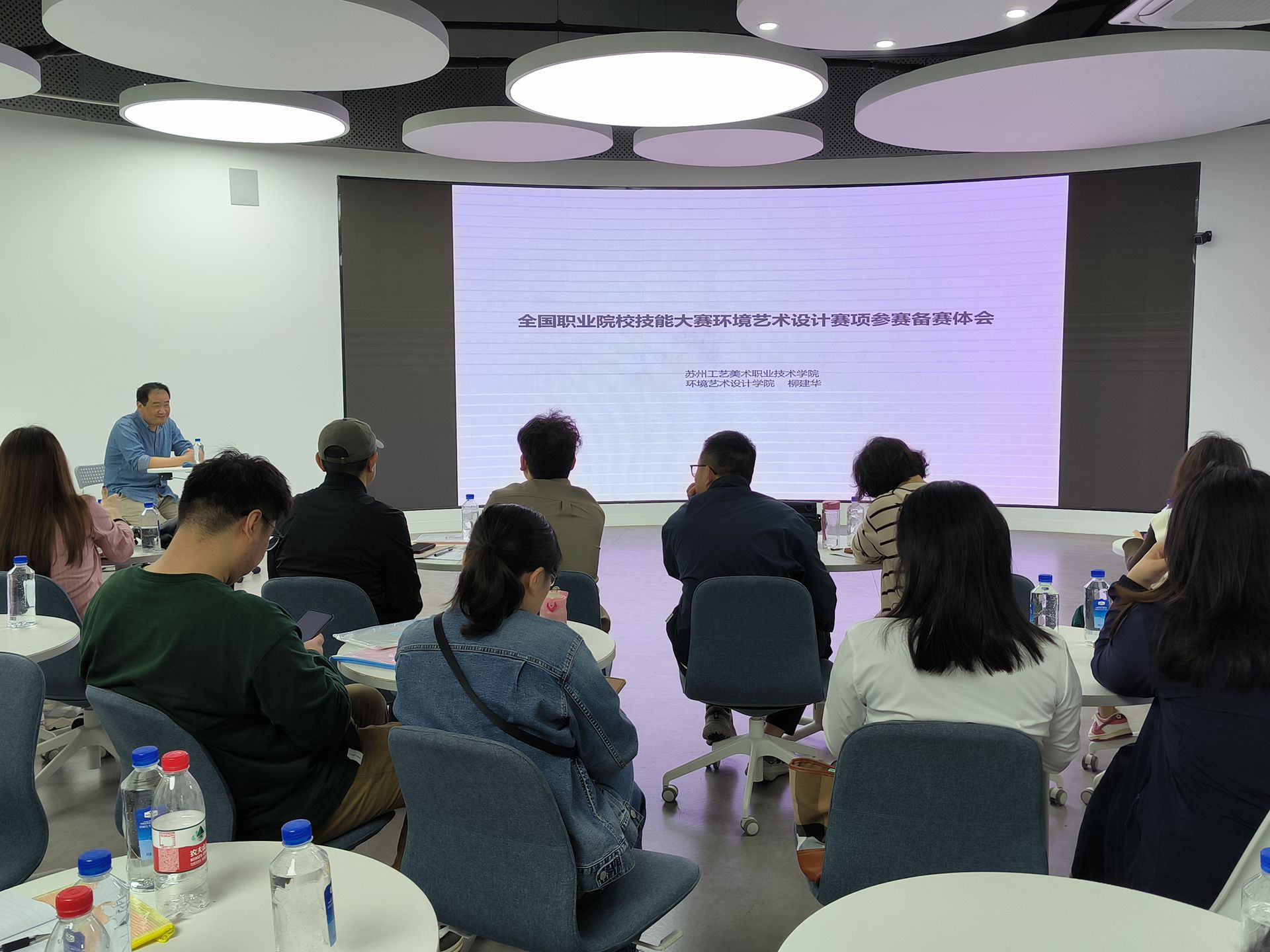 在随后的培训环节中,苏州工艺美术职业技术学院环境艺术学院柳建华院长分享了全国职业院校技能大赛环境艺术设计赛项竞赛优秀作品与参赛备赛体会。苏州工艺美术职业技术学院环境艺术学院覃池泉副院长分享了苏州工艺美术职业技术学院数字可视化应用实践项目、非遗AI数字化传承形式、传统古村落虚拟仿真实践等内容。教师们纷纷表示,柳建华和覃池泉的分享提供了宝贵的经验和启示,对他们今后的教学工作和技能竞赛产生积极的影响。