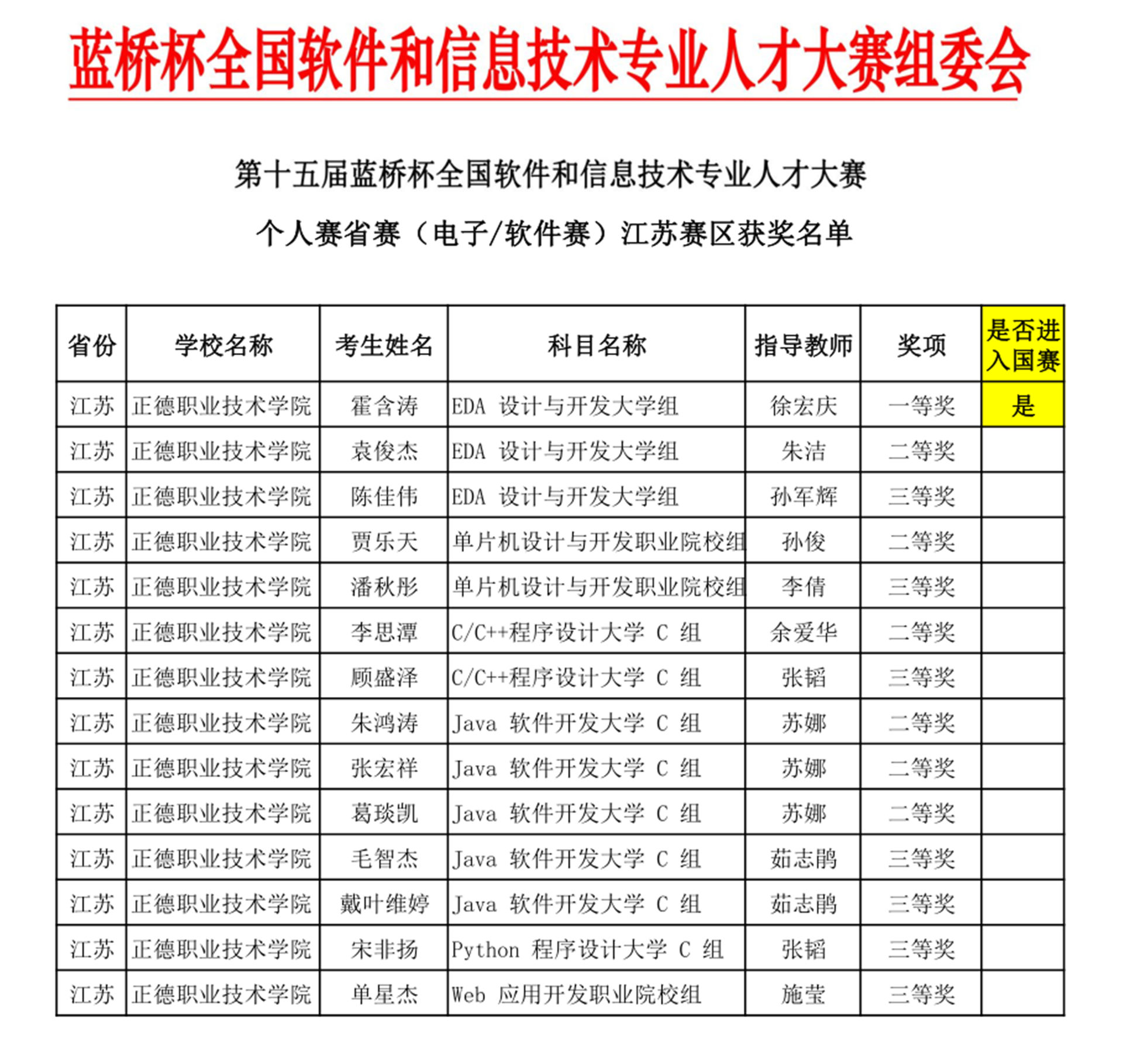 大赛的举办有利于软件和电子行业选拔出优秀的技术人才,为学生营造积极投身科学竞赛的良好学风。近年来,电子与信息技术系高度重视学生专业技能的培养与创新,强调“以赛强基,以赛促学,以赛拓能”的发展理念,希望同学们在今后的比赛中能够赛出水平、赛出风采,为自己的就业求职之路添砖加瓦,为学院争光!