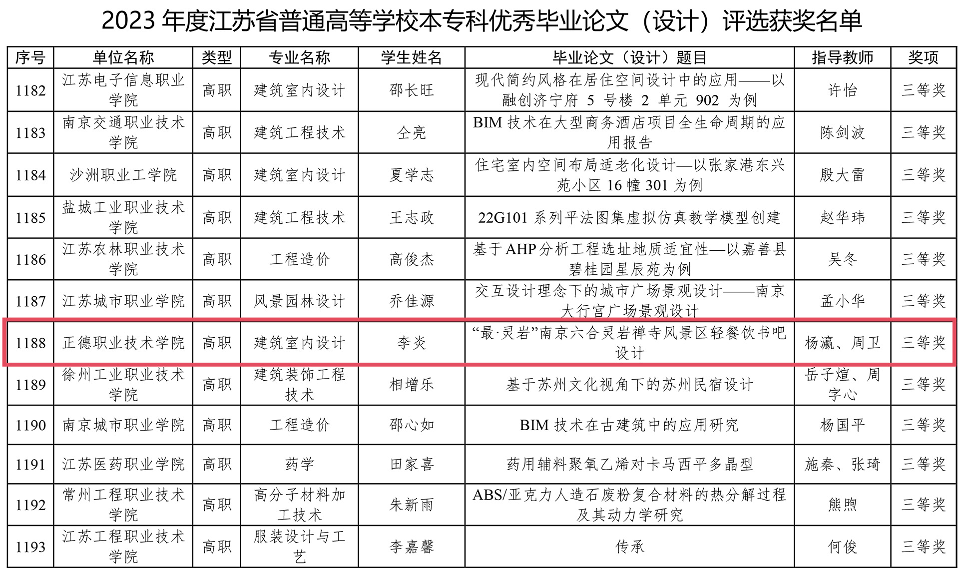 近日,江苏省教育厅对2023年江苏省普通高校本专科优秀毕业设计(论文)评选结果进行了公示,英国上市公司365艺术设计与建筑工程系传来喜讯,2020级建筑室内设计专业的李炎同学作品《“最·灵岩”南京六合灵岩禅寺风景区轻餐饮书吧设计》荣获学生毕业设计三等奖。