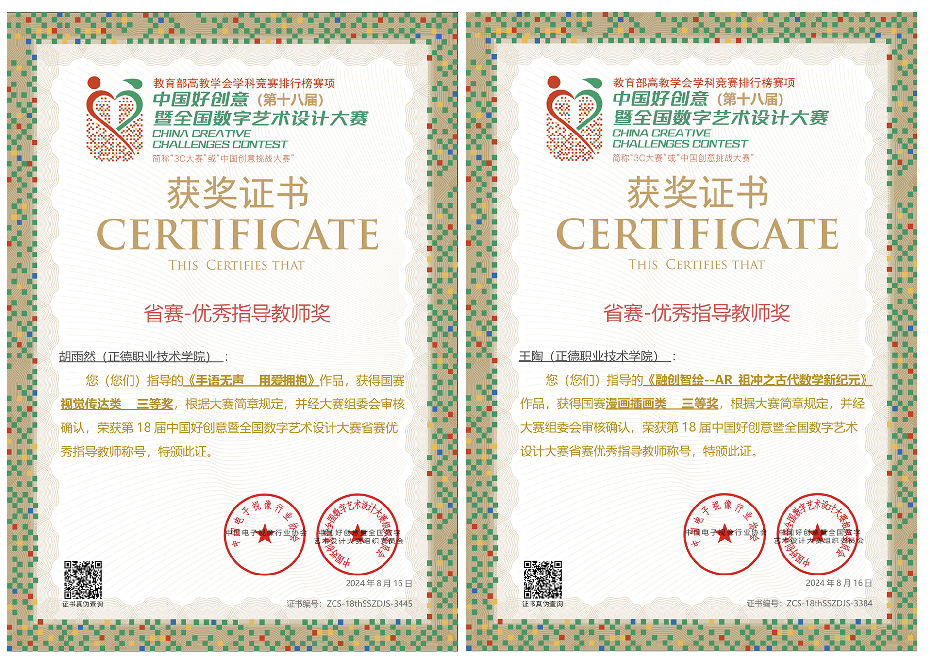 近日,第十八届中国好创意暨全国数字艺术设计大赛落下帷幕。艺术设计与建筑工程系师生荣获国家级一等奖1项、二等奖1项、三等奖2项,省级优秀奖1项,获奖数量创历史新高!胡雨然、王陶两位老师荣获了优秀指导教师奖。这一系列佳绩不仅彰显了我系在数字媒体技术领域的雄厚实力,也为学生和教师们的辛勤付出和才华展现画上了浓墨重彩的一笔。