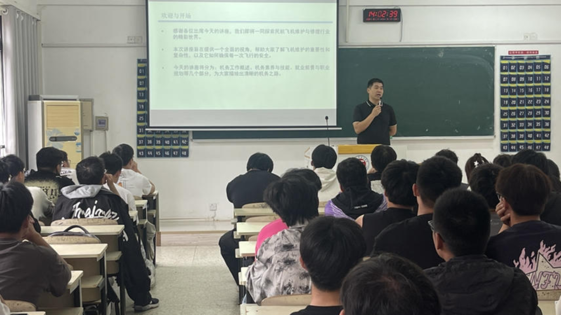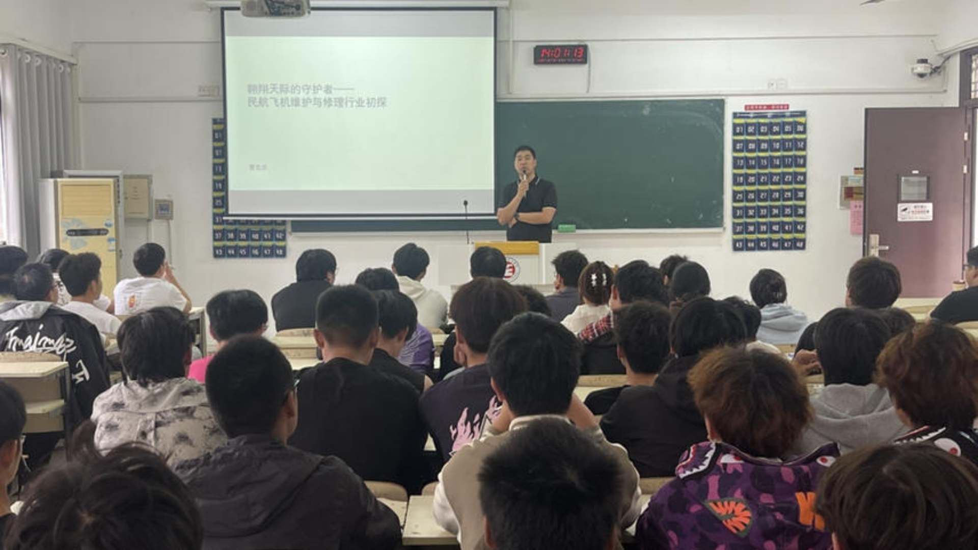 活动特邀东航技术江苏分公司的飞机结构工程师曹宏庆作为主讲嘉宾。曹工程师以其深厚的专业知识底蕴和丰富的实践经验,为师生们带来了一场生动而深刻的讲座。他不仅阐述了工匠精神在航空维修领域的核心价值,更通过一系列真实案例,展现了精湛技艺背后对细节的极致追求和对质量的严格把控,让在场的每一位师生都深受触动。