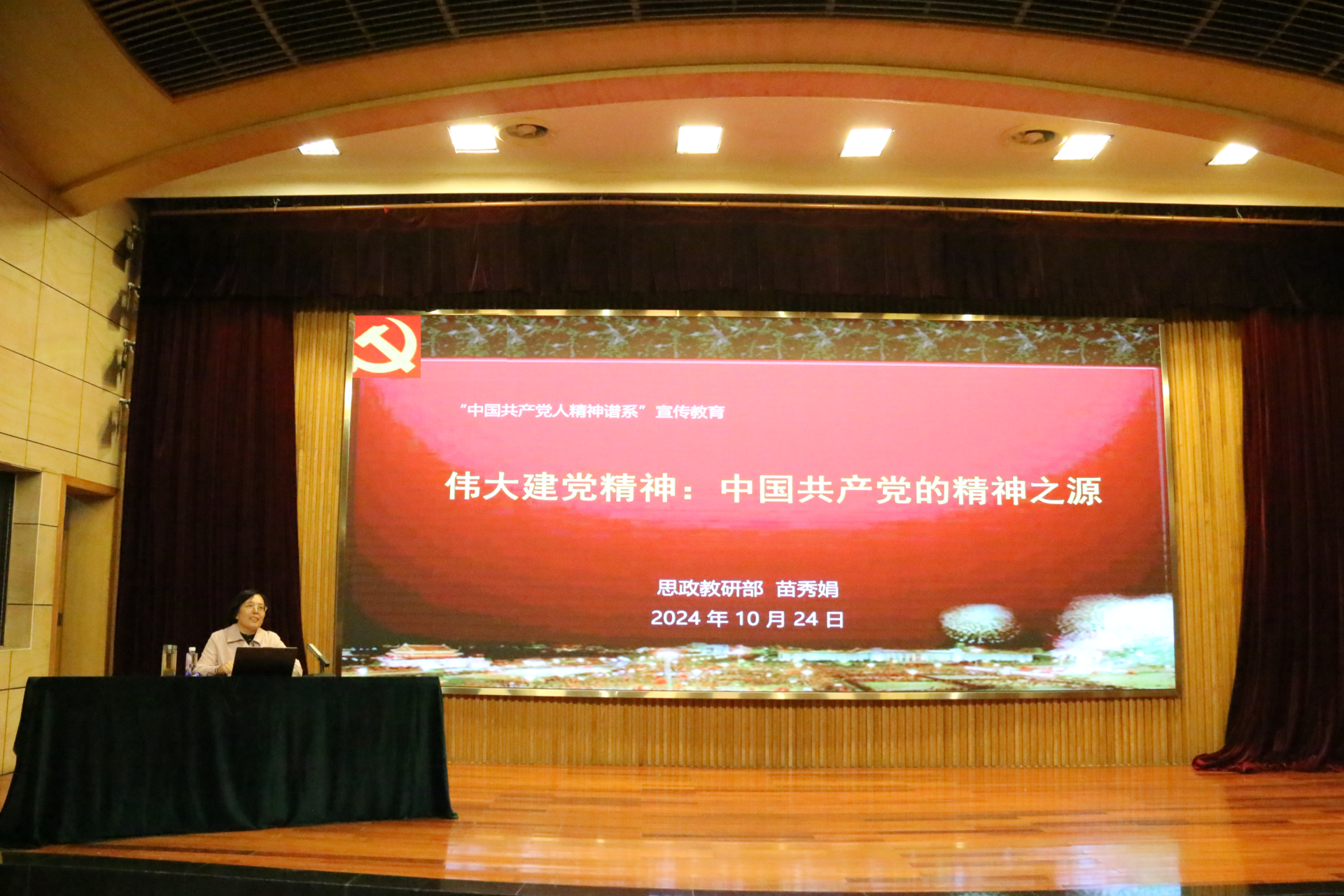 宣讲活动以一堂思政课的形式展现,我院名师思政工作室首席教授苗秀娟以《伟大建党精神:中国共产党的精神之源》为题,带领大家梳理了伟大建党精神的由来和历史发展背景,从“什么是伟大建党精神”“伟大建党精神的深刻内涵是什么”“如何弘扬好伟大建党精神”等方面入手,向大家深刻阐述了伟大建党精神的内涵蕴意和价值取向,引领广大青年学习“坚持真理、坚守理想,践行初心、担当使命,不怕牺牲、英勇斗争,对党忠诚、不负人民”的伟大建党精神,深刻领悟中国共产党“因何而立”“向何处去”“如何行动”“为谁出发”的根本问题,从而在团结奋斗中弘扬和践行伟大建党精神,把伟大建党精神转化为奋进新征程的强大动力。