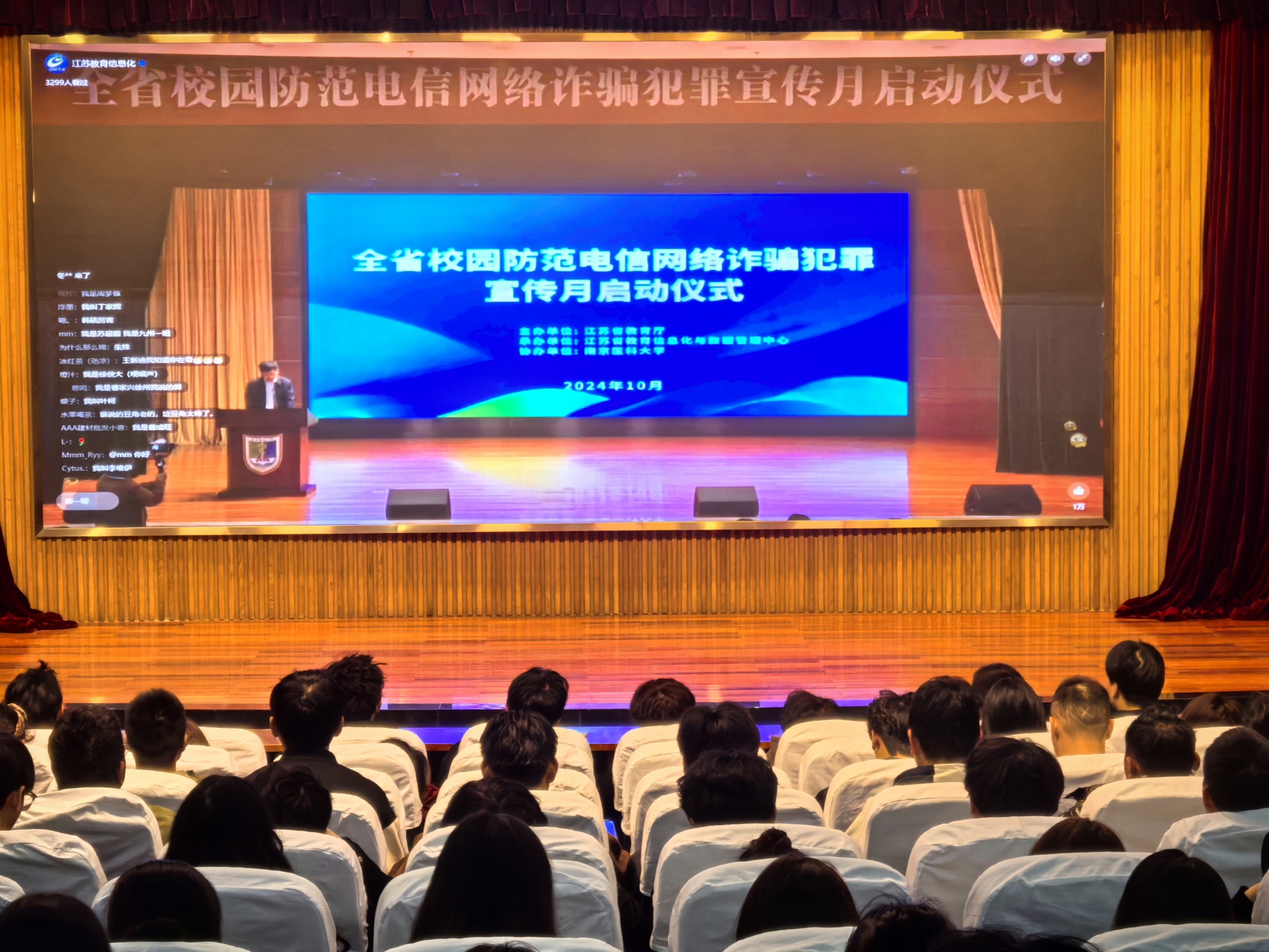 为加强校园防范电信网络诈骗犯罪宣传,增强广大师生防范意识,引导大家树立正确的网络安全观,提高自我保护能力。10月24日上午我院组织学生代表在报告厅参加线上江苏省校园防范电信网络诈骗犯罪宣传月启动仪式。