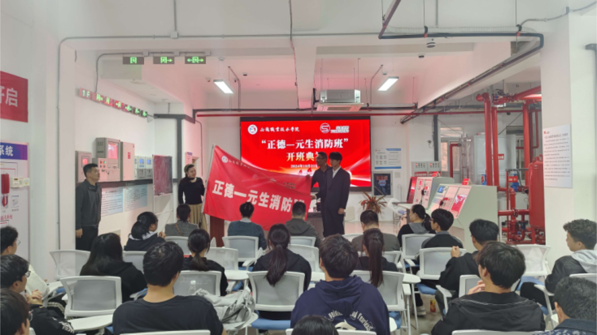 刘臻在讲话中指出“正德—元生消防班”的建立是校企双方积极履行社会责任、实现双元育人的生动实践。希望同学们通过系统学习,实现理论知识与实践技能的结合,不断提升与岗位的适配性。最后他期望与学院以“正德—元生消防班”为切入点,坚持产教融合、工学结合,持续深化校企合作,携手推进高素质技术技能人才培养。