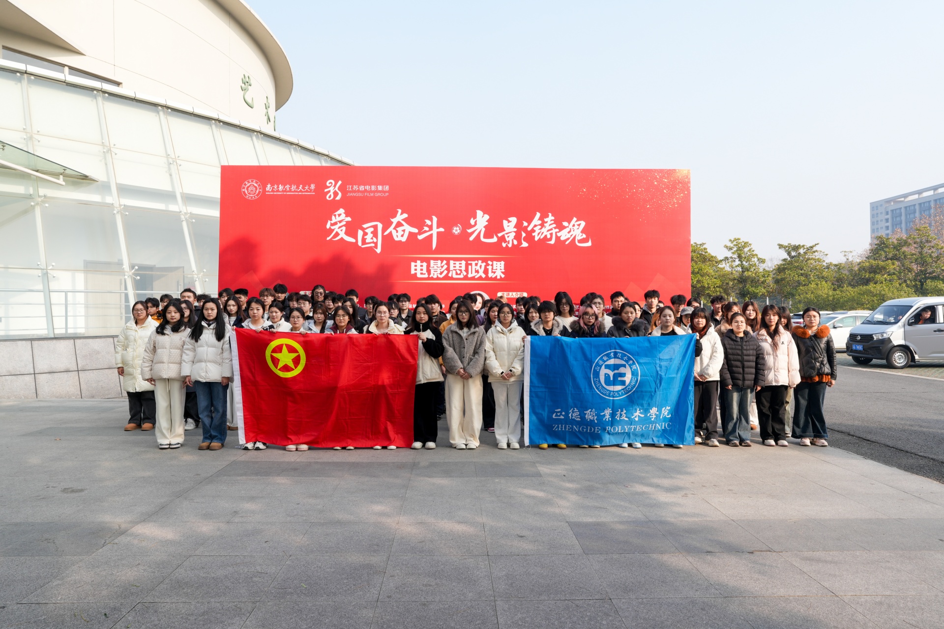 为坚定理想信念,厚植家国情怀,12月17日,我院组织100名学生代表赴南京航空航天大学参加“爱国奋斗·光影铸魂”电影思政课活动。此次活动不仅是一次视听盛宴,更是一堂行走的、沉浸式的“大思政课”,让我院学子在光影艺术中感受时代脉搏,在思想碰撞中坚定理想信念。