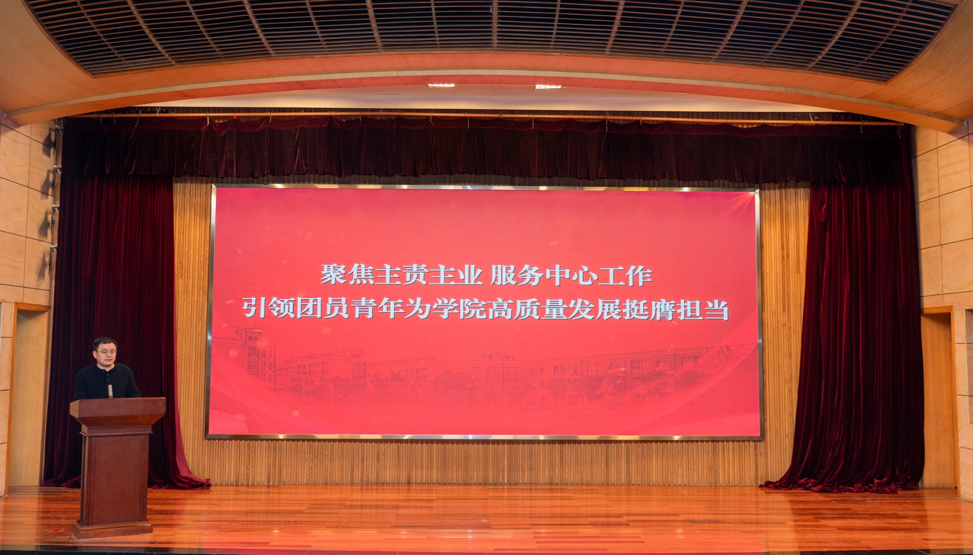 为深入学习贯彻习近平总书记关于青年工作的重要思想,聚焦共青团政治学校、先锋力量、桥梁纽带、先进组织功能定位,全面提升团学干部政治能力、理论素养和青年工作本领,更好引领广大团员青年建功“十五五”,奋进新征程。3月25日,我院在报告厅召开2026年春季学期团学干部培训会。中共江苏省委党校马克思主义学院易华勇教授、院团委主要负责人及院系学生组织负责人,各系学生干部代表近300人参加了此次培训会。