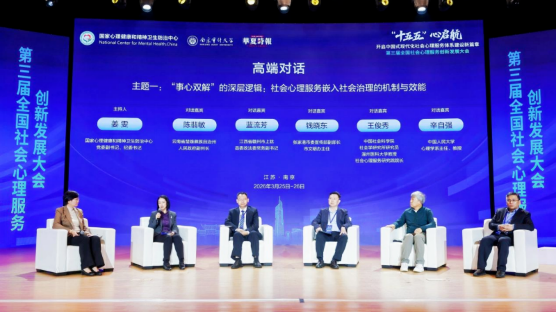 3月25日至26日,第三届全国社会心理服务创新发展大会在江苏南京召开。本次大会以“‘十五五’心启航 开启中国式现代化社会心理服务体系建设新篇章”为主题,由国家心理健康和精神卫生防治中心、南京审计大学联合中国科学院心理研究所、中国心理学会、中国心理卫生协会等单位共同举办。我院大学生心理健康教育中心教师傅蕴男应邀参会,与来自全国各地的2500余名专家学者、行业代表及一线工作者深入交流,收获颇丰。