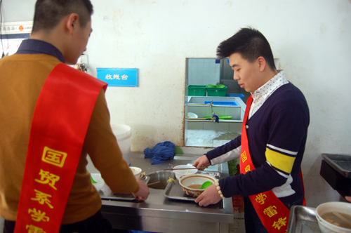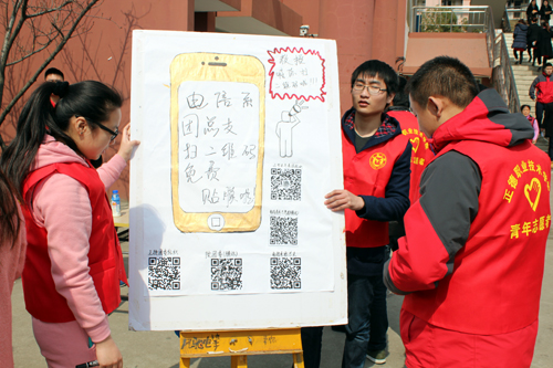 当天,活动主要通过宣传板、手绘海报、横幅、发放南京青年志愿者卡等形式,积极开展各自具有典型特色的志愿服务活动。电子与信息技术系的志愿者们发动全院师生关注我院共青团官方微信,只要拿出手机扫一扫,便可以得到免费贴膜、维修手机、电脑的服务。工商管理系的志愿者们则在3月1日利用周末时间前往该系社会实践基地——南京金色夕阳敬老院看望老人,陪老人聊天,帮老人剪指甲、读报纸,用点滴行动为老人们排解生活的单调和苦闷。艺术设计与建筑工程系的志愿者开展了“向大自然道歉”环保志愿服务活动,他们前往翠屏山捡拾垃圾,旨在用实际行动唤起人们的环保意识。同时,该系志愿者携手江宁团区委的志愿者们,相约江宁万达,精心张罗了一场快闪热舞,用欢快的歌舞开启“志青春·迎青奥”的热潮。汽车工程系的志愿者们结合自身专业为全院车辆提供清洗、轮胎检查、测量胎压等服务,老师们坐上干净明朗的校车心情倍感愉悦。机电工程系的志愿者们开展“光盘”行动,号召广大学生杜绝“舌尖上的浪费”现象,践行雷锋同志勤俭节约的意识,接力加入“光盘”一族。国际经济与贸易系的志愿者们关注那些平时默默为同学们提供服务的人,秉承亲身体验的原则,今天当一回宿管工作人员、食堂服务人员,从一点一滴中的体会他们的不易,更加珍惜他们的劳动成果。民用航空系的志愿者一大早前往教学楼,赶在8点钟上课前为辛勤教学的老师们打扫办公室,还利用课余时间擦洗校园橱窗。院团委伙管会的志愿者在这一天,为食堂服务人员提供了清洁用品,架起食堂和同学之间的桥梁。