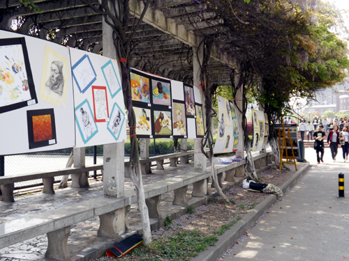 本次作品展由2013届室内设计专业158位同学自发组织,作为室内设计专业的首届学生,在室内设计专业带头人周卫老师的指导下,同学们踊跃地将自己的专业作品及创意作品向全校师生展示。展览以“紫藤花开”为主题,作品涵盖了素描、水粉、书法、手绘、设计、手工等创作类型。参展的130多张作品中,引人深思的写实人物,惟妙惟肖的静物,清新脱俗的风景花卉,挺拔有力的行草书法,充满创意的设计手绘﹒﹒﹒令师生们目不暇接。手工绘制的院徽更是展现了同学们对学院满满的爱。