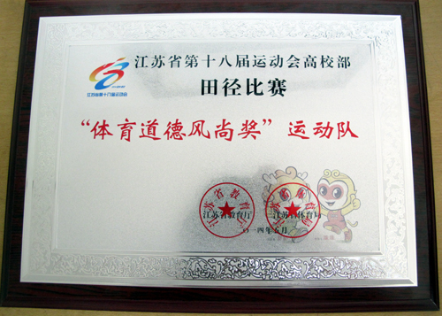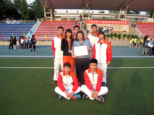 5月9日至12日,2014年江苏省第十八届运动会高校部田径乙组比赛在南京航空航天大学江宁校区举行。我院田径队历经四天紧张激烈的角逐,最终取得了较好的成绩:经济与管理系陈军志同学荣获男子跳远第三名并以6.72米打破了6.55米的院纪录,艺术设计与建筑工程系沈睿凯同学荣获男子400米栏第四名,电子与信息技术系刘琪同学荣获女子铅球第六名,男子跳远和男子400米栏这两个项目成绩达到了国家二级水平标准,陈军志和刘琪两位同学荣获“体育道德风尚奖运动员”称号,我院田径队被评为“体育道德风尚奖”代表队,是本届运动会获得此项荣誉的十个代表队之一。