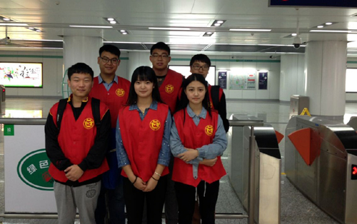 参加翠屏山地铁站志愿者服务的我院青年志愿者