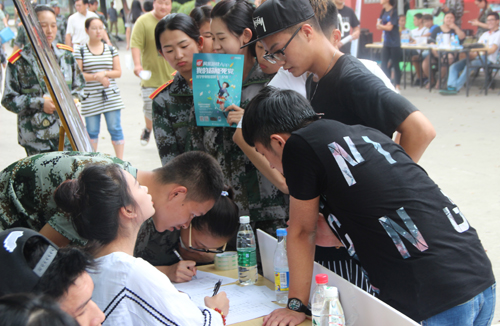 在学生组织招新如火如荼举行时,团省委发起的“青春中的那抹绿色”活动也同期举行,活动将军训学生精彩瞬间通过微信平台上报,我院学生军训风采将有望更大范围展示,活动现场还为新生们提供打印军训照片的机会。