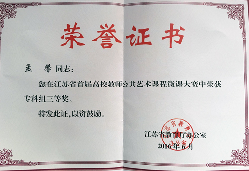 近日,江苏省教育厅下发了《省教育厅办公室关于公布江苏省首届高校教师公共艺术课程微课大赛结果的通知》。我院艺术设计与建筑工程系孟馨老师的《用情感塑造精神:赏析贝多芬0p.67 c小调第五交响曲》作品荣获三等奖。